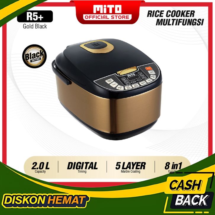 DISKON/ MITO Digital Rice Cooker R5+ Magic Com Penanak Nasi 2L Black Edition Gold Original