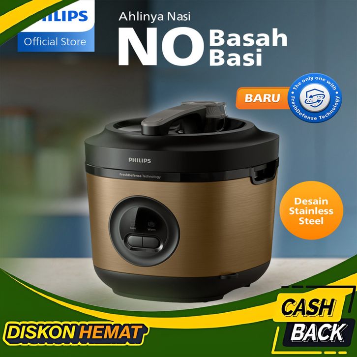 DISKON/ Philips Rice Cooker Magicom 1.8 L - 3000 Premium Series HD3211/32 - Gold - Bakuhanseki Inner Pot - Anti lengket