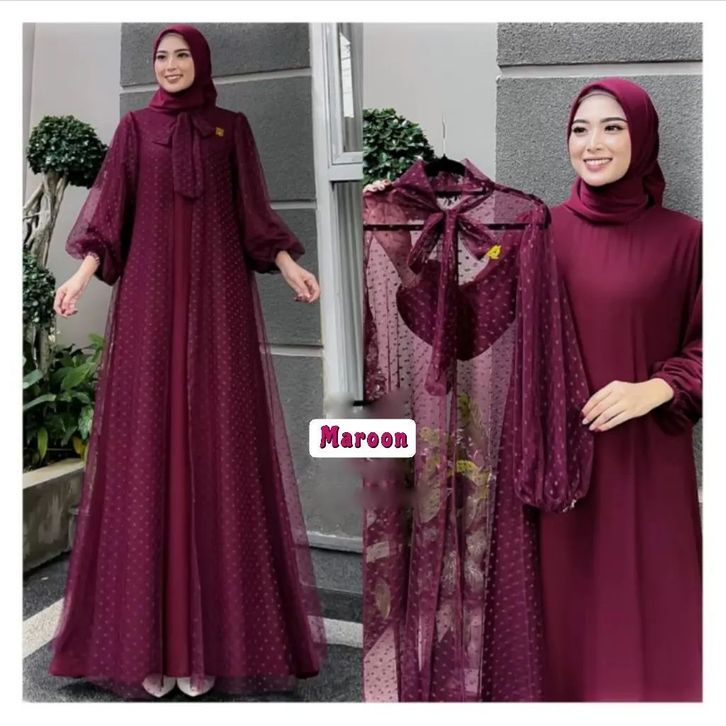 Dress Serena Set Bahan Ceruty Tille Gamis Lebaran 2024 Model Gamis Terbaru Dress Kondangan Murah ELF