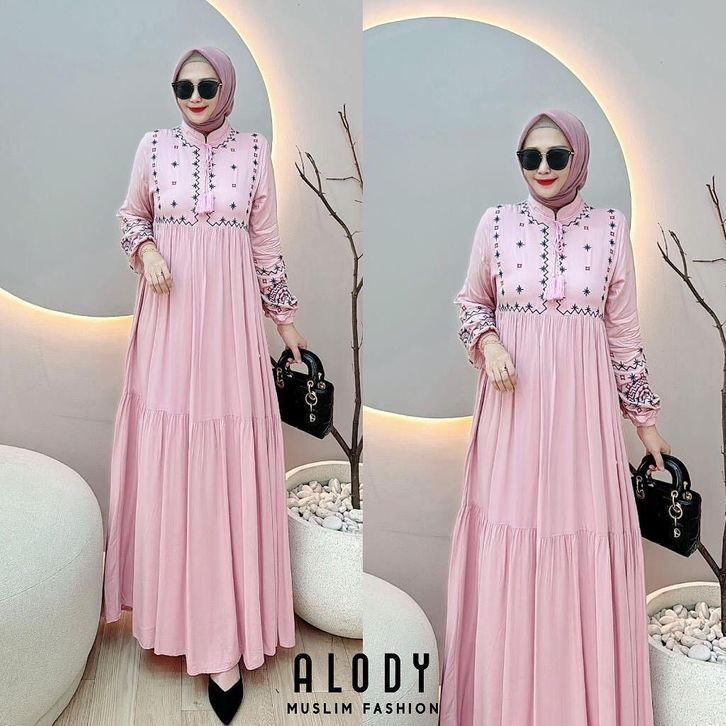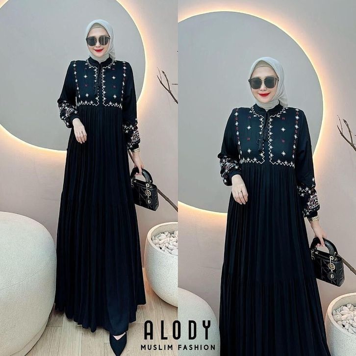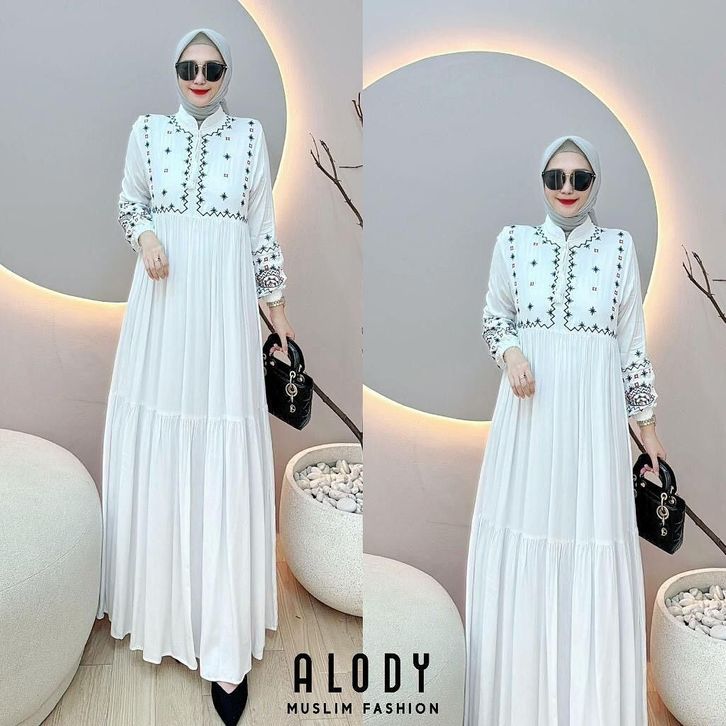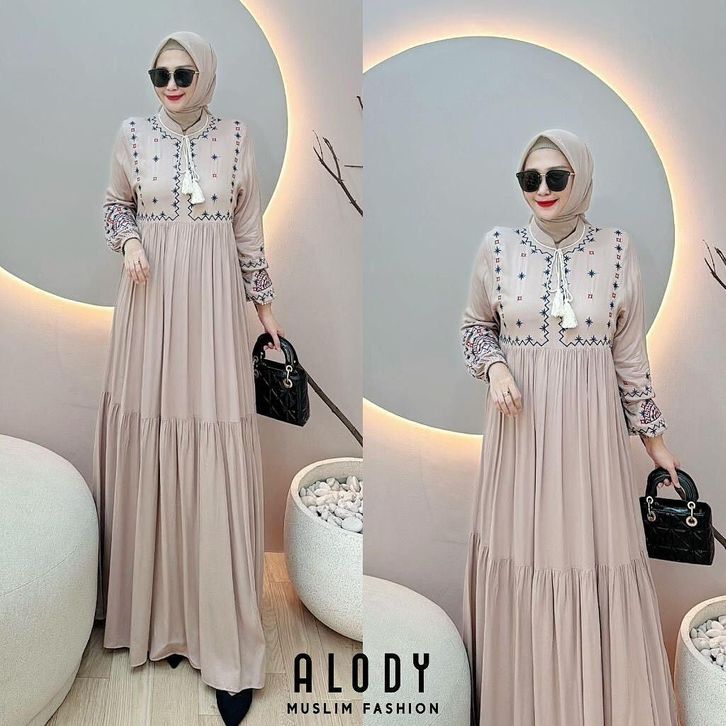 Bordir Alody Dress Bahan Katun Gamis Lebaran 2024 Model Gamis Terbaru Dress Kondangan Wanita ELF