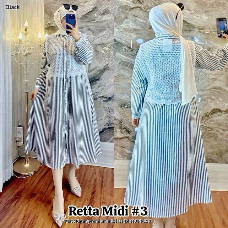 Dress Retta Midi Muslim Bahan Katun Dress Korean Style Baju Gamis Lebaran 2024 Gamis Terbaru ELF