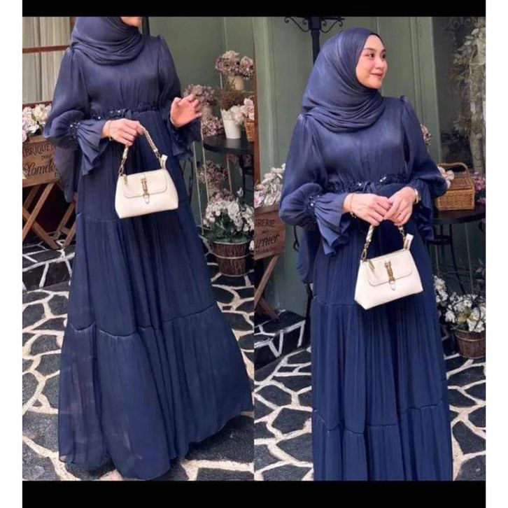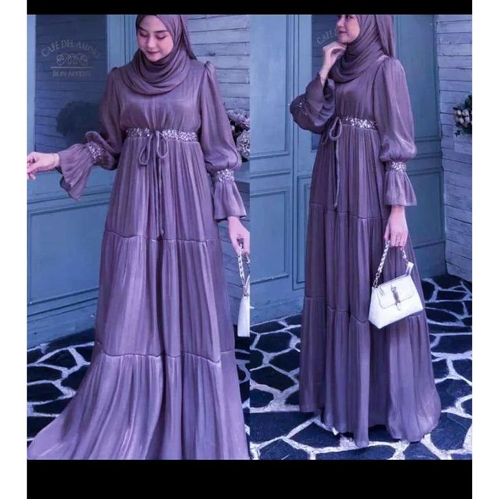 Mahira Dress Bahan Shimmer Dress Kondangan Gamis Terbaru 2023 Lebaran Wanita Gaun Pesta Mewah Murah ELF