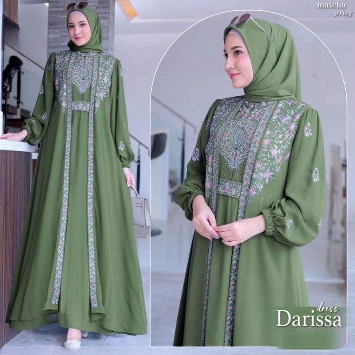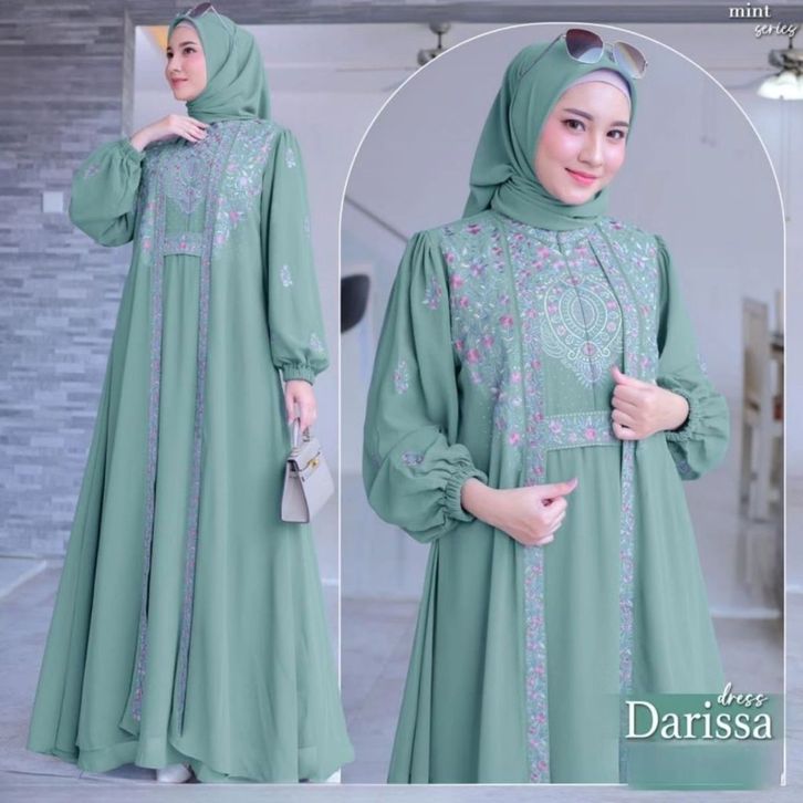 Darissa Dress Bordir Bahan Cerutty Babydoll Gamis Terbaru 2024 Simpel Elegan Dress Wanita Murah ELF