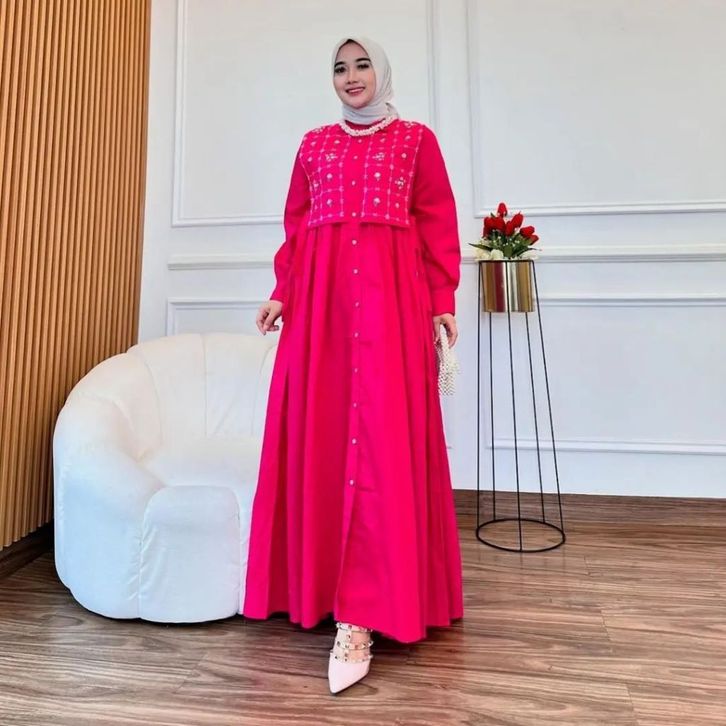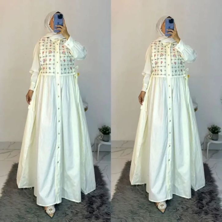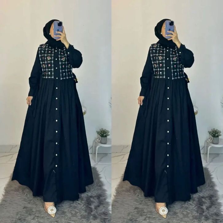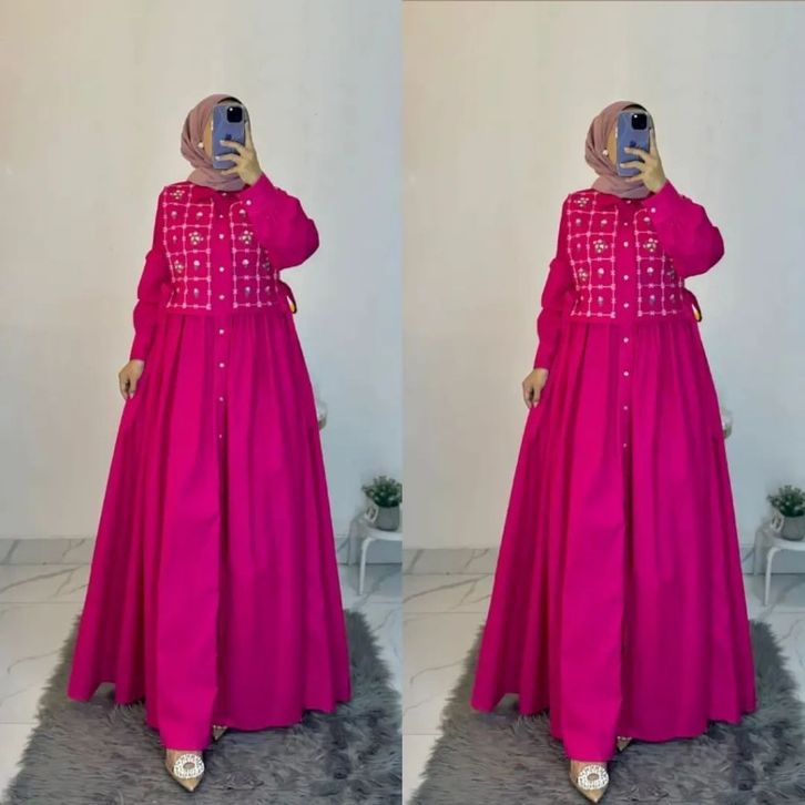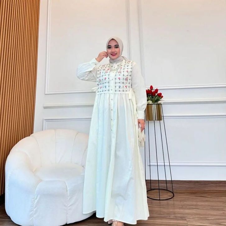 Dania Dress Bahan Crinkle Bordir Gamis Lebaran 2024 Model Gamis Terbaru Dress Kondangan Wanita ELF