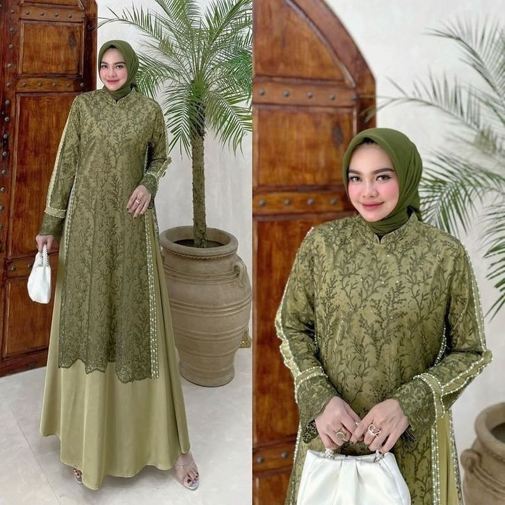 DRESS ellyfashion FREDELA DRESS Brukat Bahan Armany Gamis Lebaran 2024 Model Gamis Terbaru Dress Kondangan