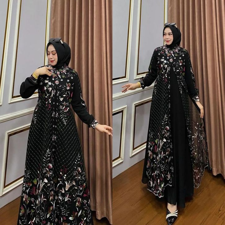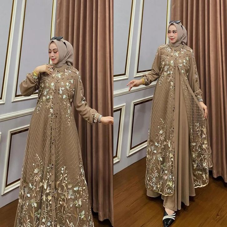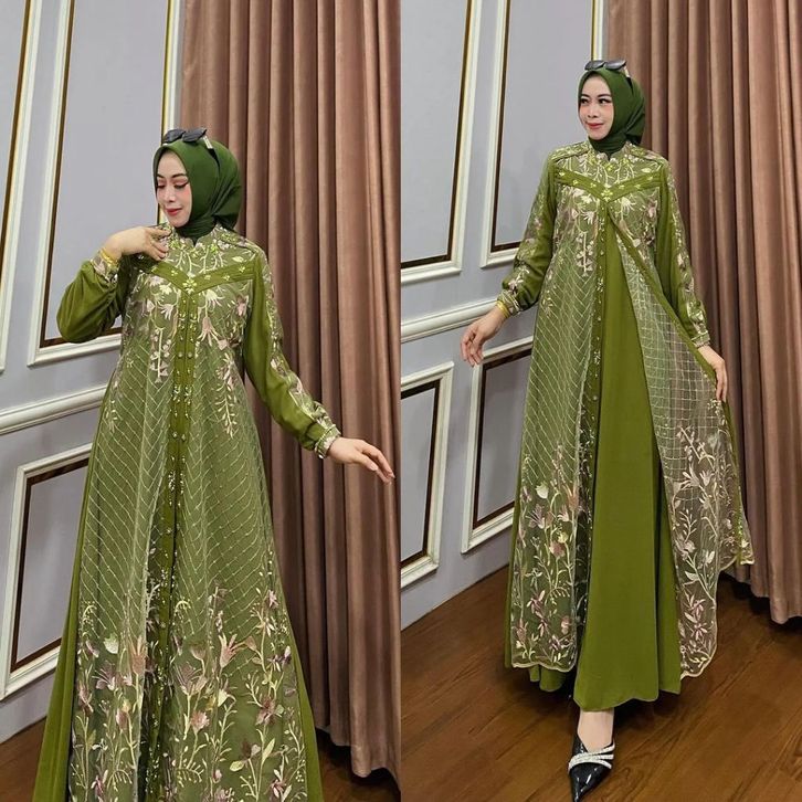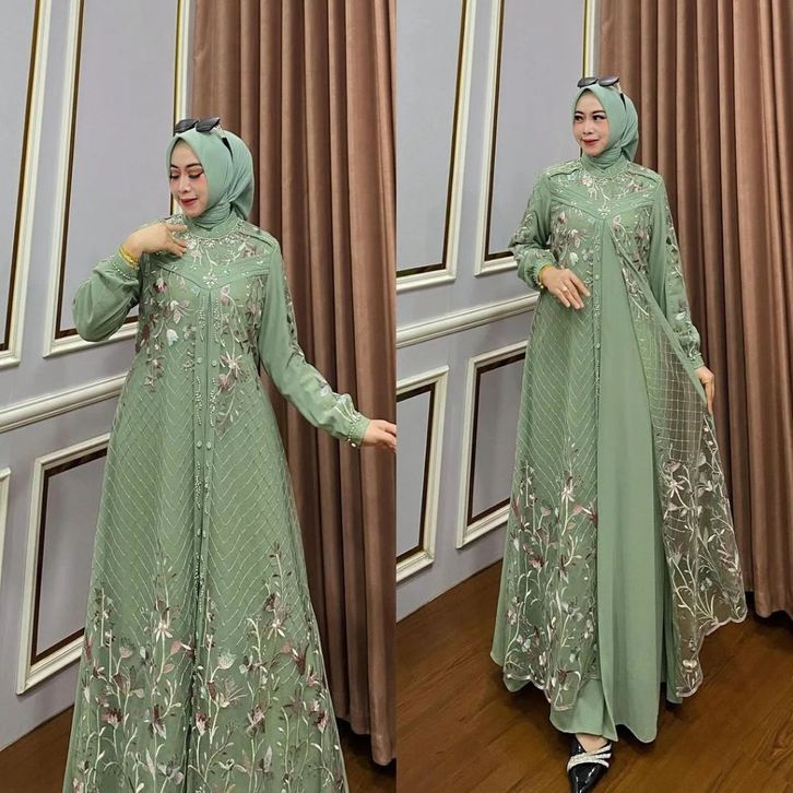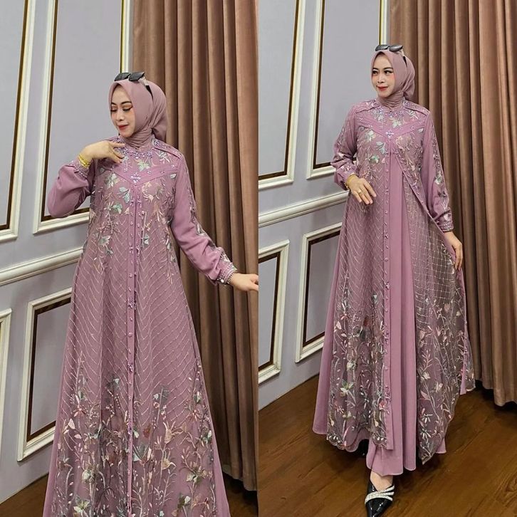 DRESS ellyfashion Anatasya Tille Bahan Ceruty Gamis Lebaran 2024 Model Gamis Terbaru Dress Kondangan