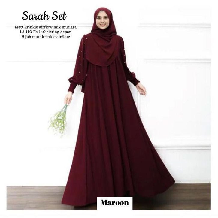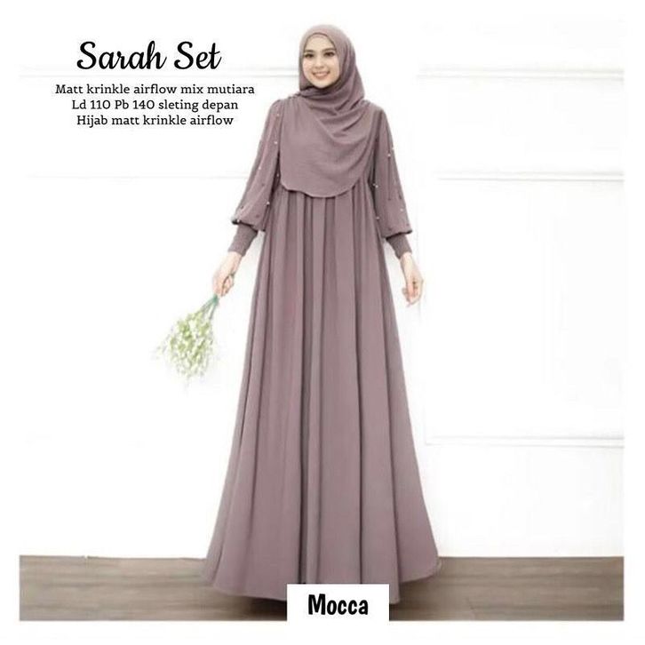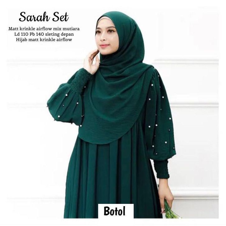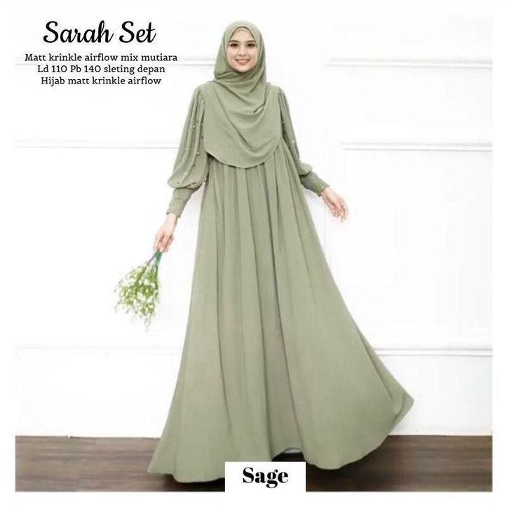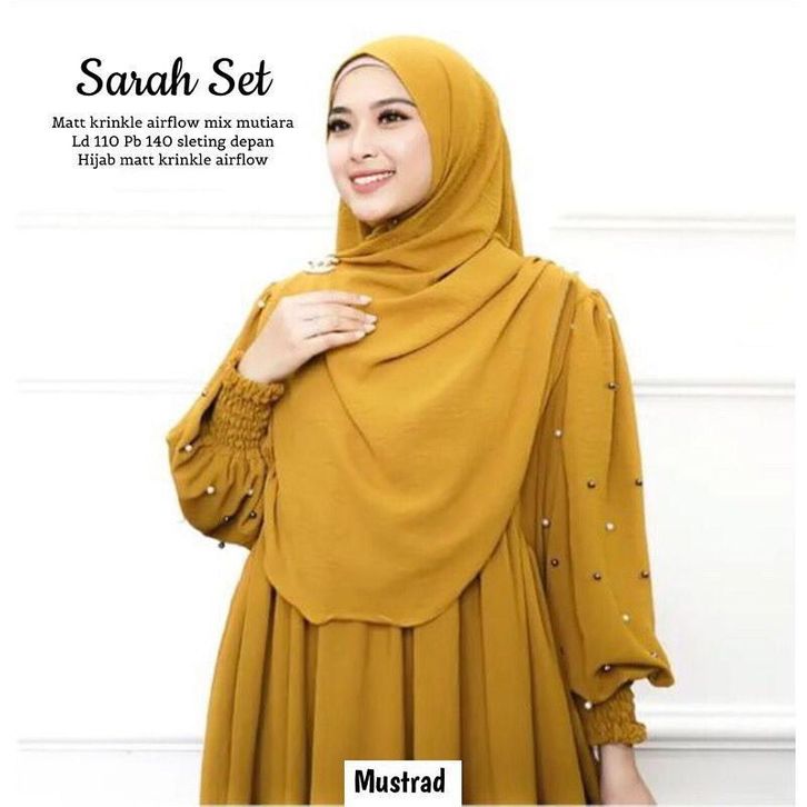 Dress Sarah Set + Pashmina Bahan Crinkle Airflow Baju Gamis Terbaru 2023 Lebaran Wanita Dress Kondangan Mewah Simpel Mu