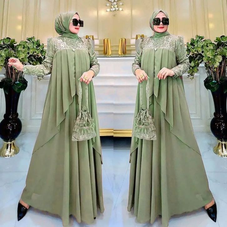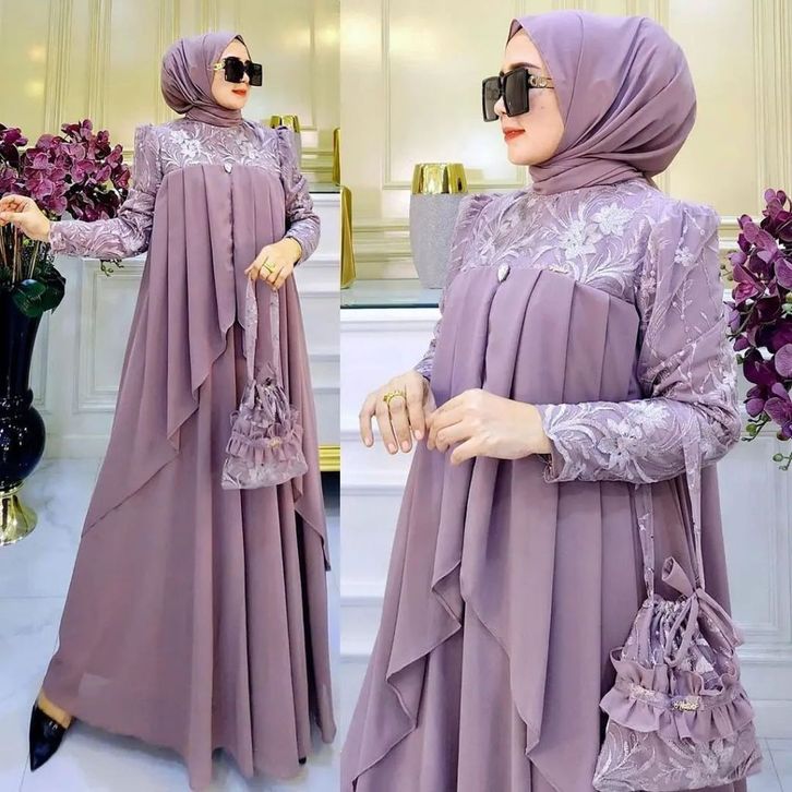 Lavina Dress Bahan Cerutty Babydoll Dress Kondangan Brukat Gamis Terbaru 2023 Lebaran Wanita Gaun Pesta Mewah Murah ELF
