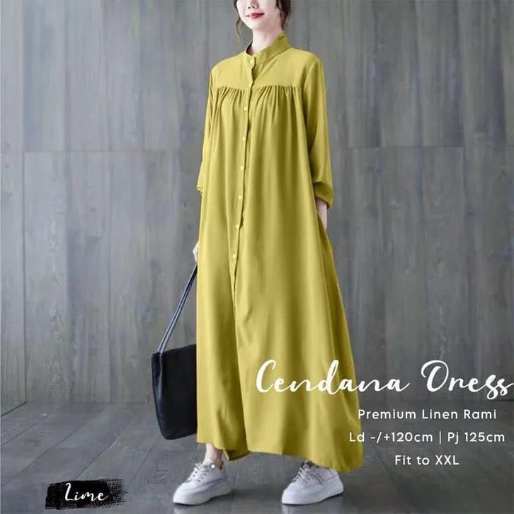 Cendana Dress Bahan Linen Rami Dress Wanita Kekinian Outfit Casual Dress Wanita Korean Style ELF