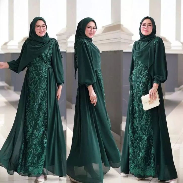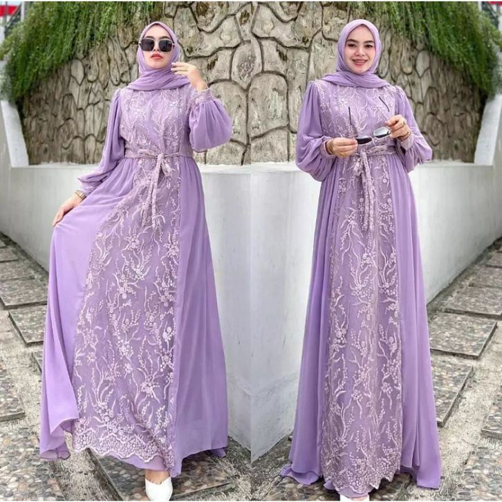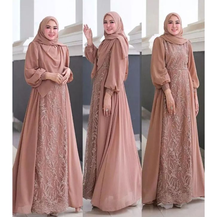 Dress Zaskia Gamis Cerutty Babydoll mix Brukat Baju Muslim Wanita Terbaru 2023 Fashion Muslimah Formal Casual Dress EF