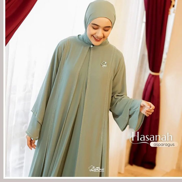 Abaya Hasanah Dress Bahan Ceruty Gamis Lebaran 2024 Model Gamis Terbaru Dress Kondangan Wanita ELF