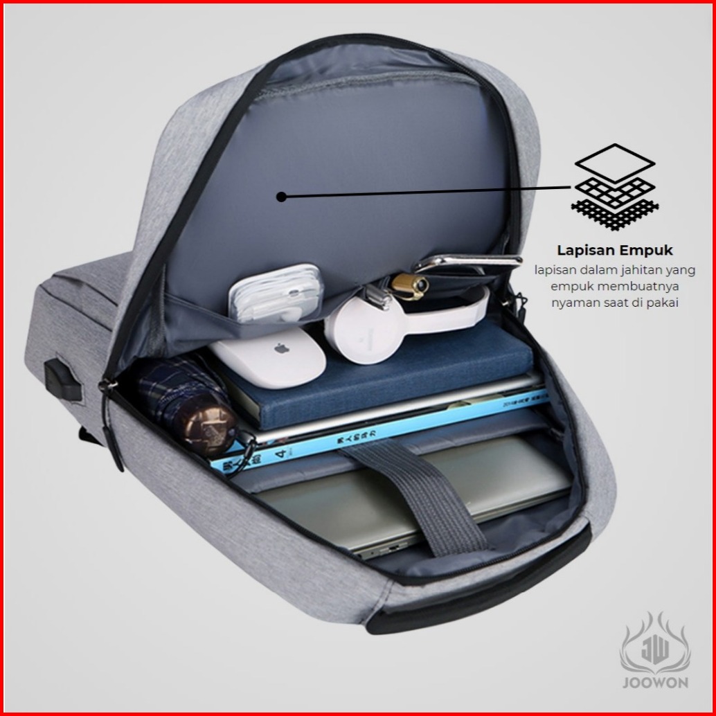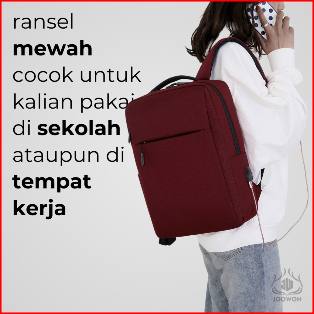 Tas Ransel Sekolah Kerja Kuliah Backpack Kanvas Import Port Usb Trendy Unisex Korean Style - Wy14