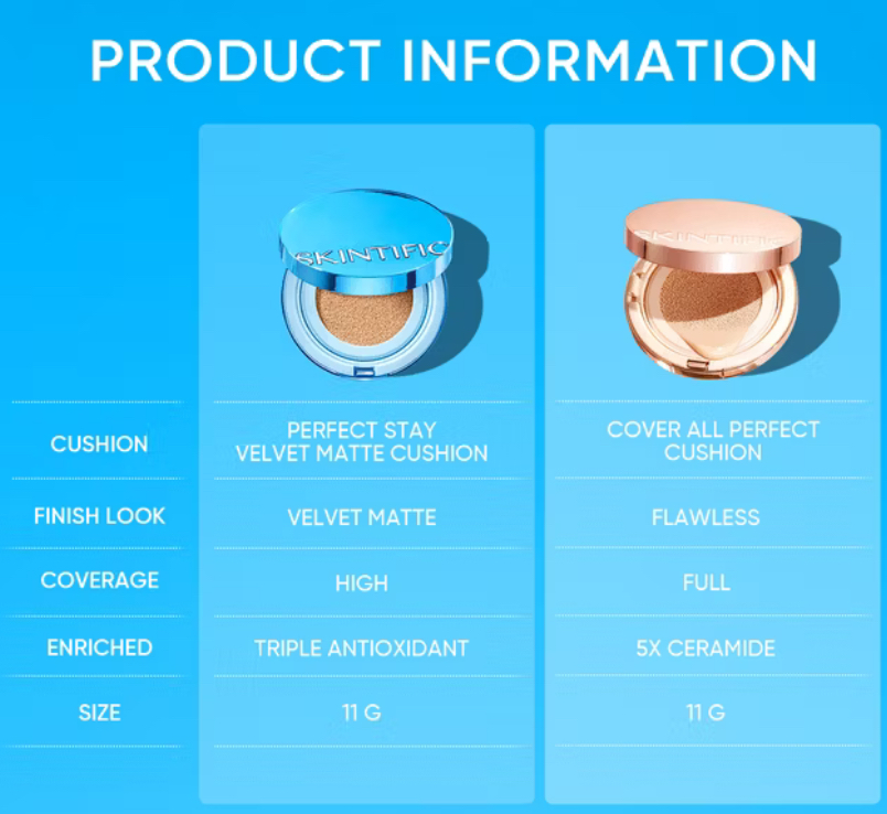 Perfect Stay Velvet Matte Cushion Fondasi Compact 11ml Oil-Control 5 Shades Waterproof Sweatproof Matte Finish Poreless
