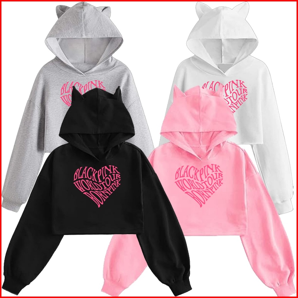 Blackpink Worldtour Hoodie Sweater Basic Crop Anak Cewek Perempuan Gaya Korea Untuk Umur 2-12 Tahun