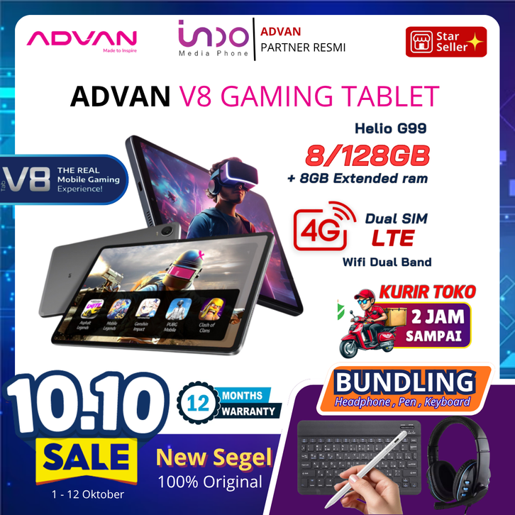 ADVAN Tab V8 8/128GB 4G LTE - Gaming Tablet Helio G99 - Up to 16GB ram Extended - tablet gaming Advan v8