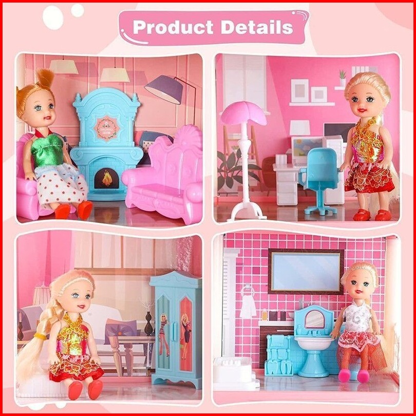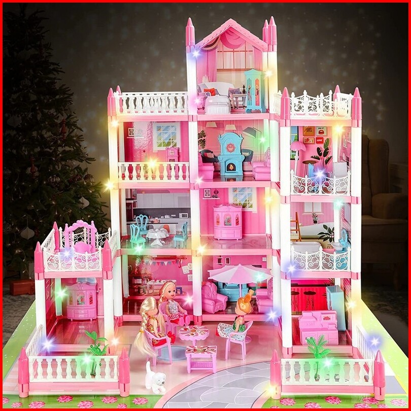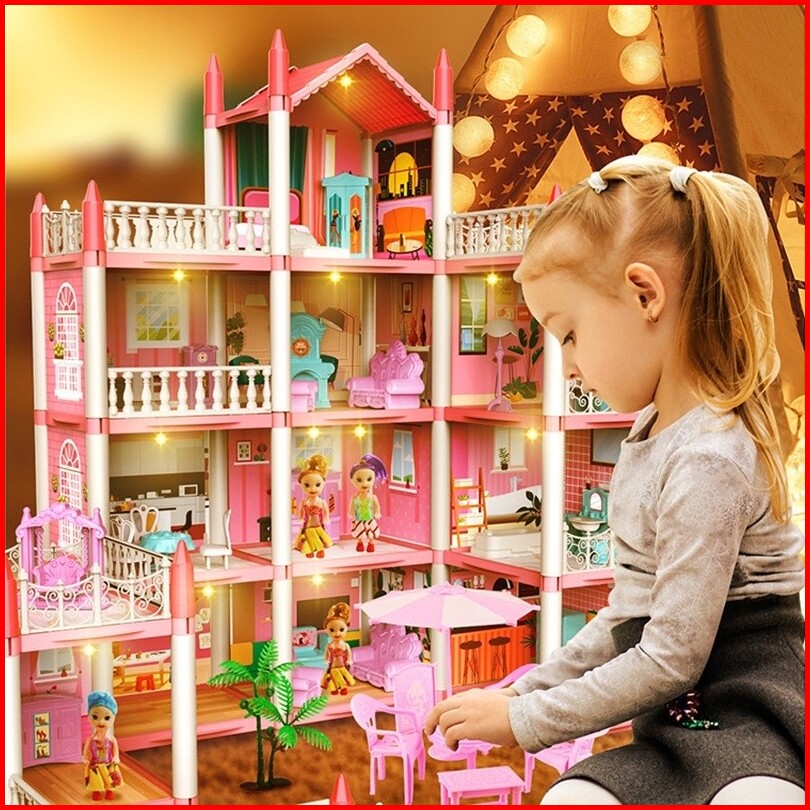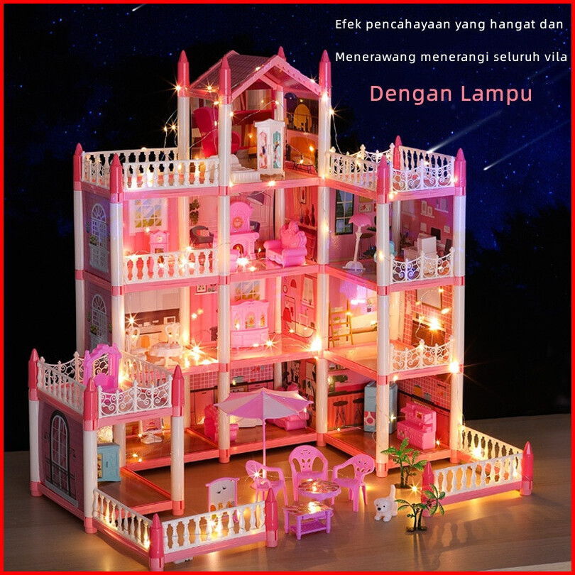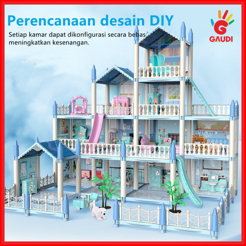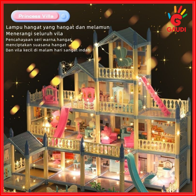 Gaudi Mainan Doll House Princess Castle Besar 14 House Rumah Rumahan Anak Perempuan Lengkap Perabot Rumah Dengan Lampu