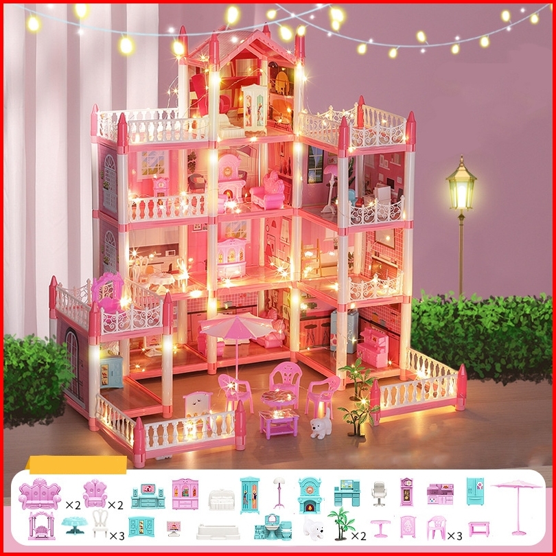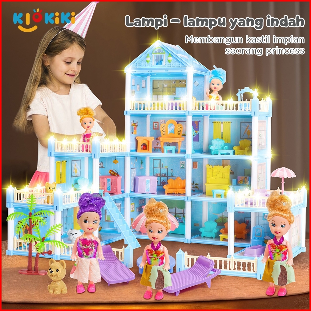 Kikitoy 15 House Doll House Princess Castle Set Besar Rumah Rumahan Perabot Rumah Dengan Lampu