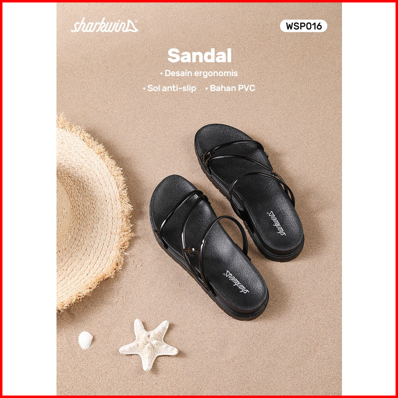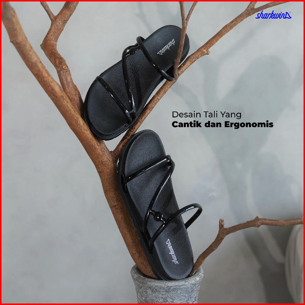 Sharkwin Sandal Wanita Sandal Tali Modern Kekinian Anti Slip Slide Korean Style Selop Flip Flop Slippers Wsp016 Black Si