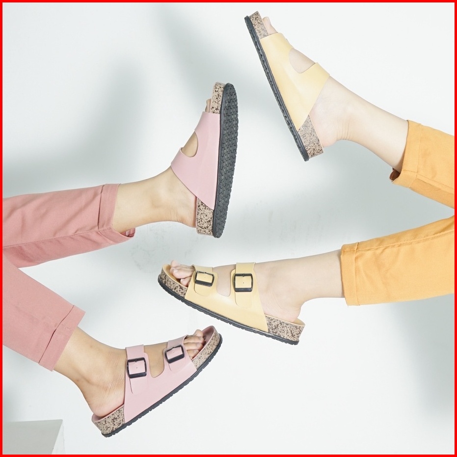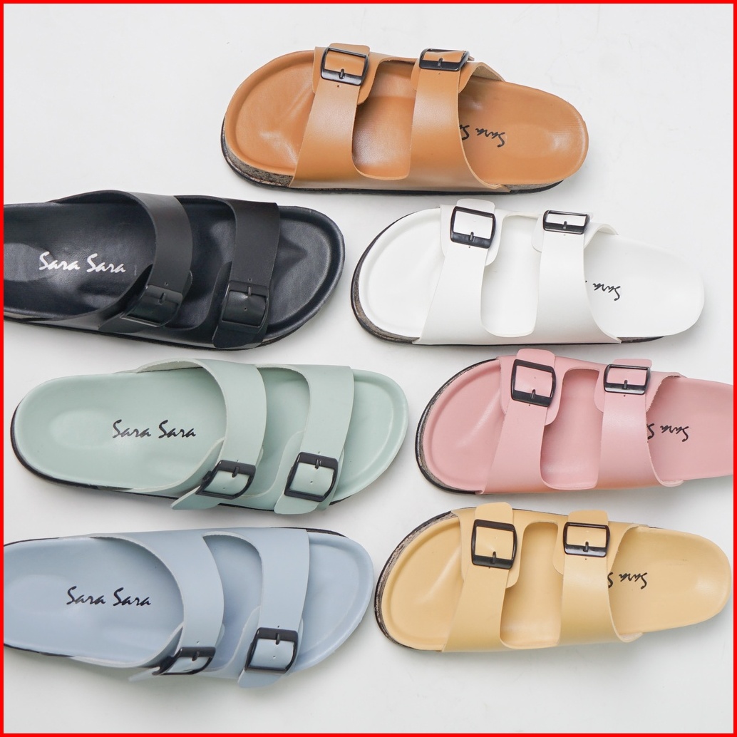Sara Sara Yuk - Sandal Wanita Slop Casual Model Birken Sol Puyuh Sarasara Jinny Sendal Selop Cewek Kulit Santai Strap Ge