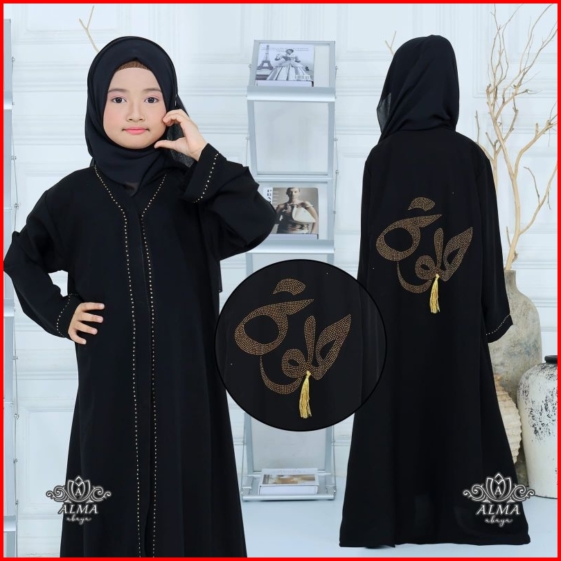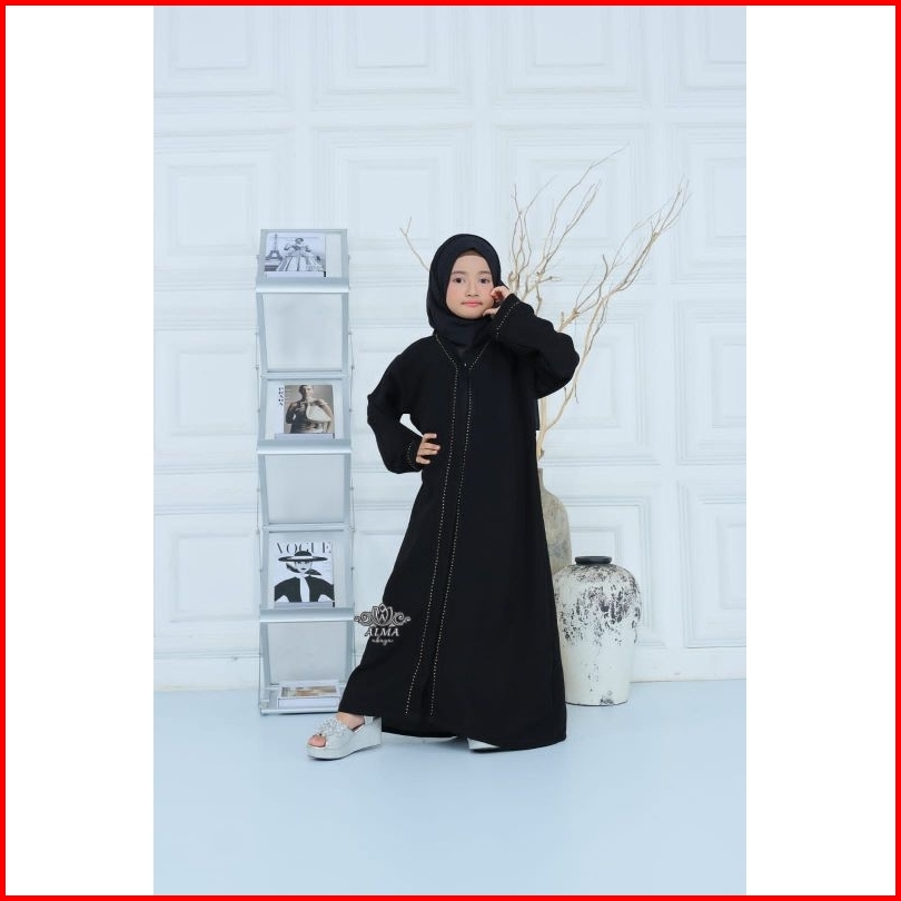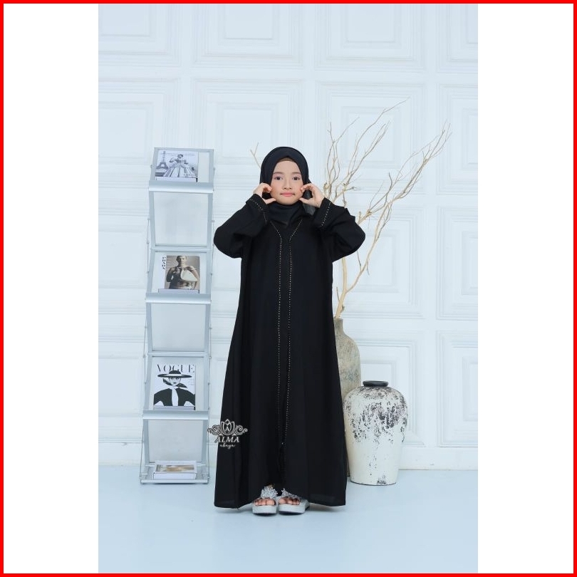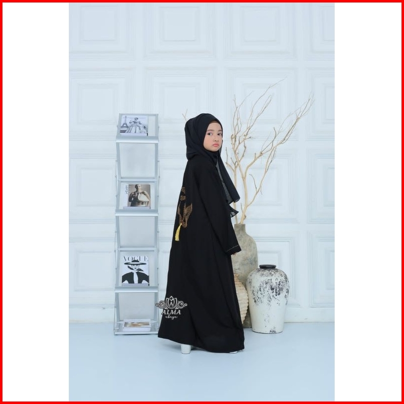 Alma Exclusive Abaya Anak Helwa Swarosvky Gamis Syari Hitam Bordir Turkey Muslimah Cantik Turki