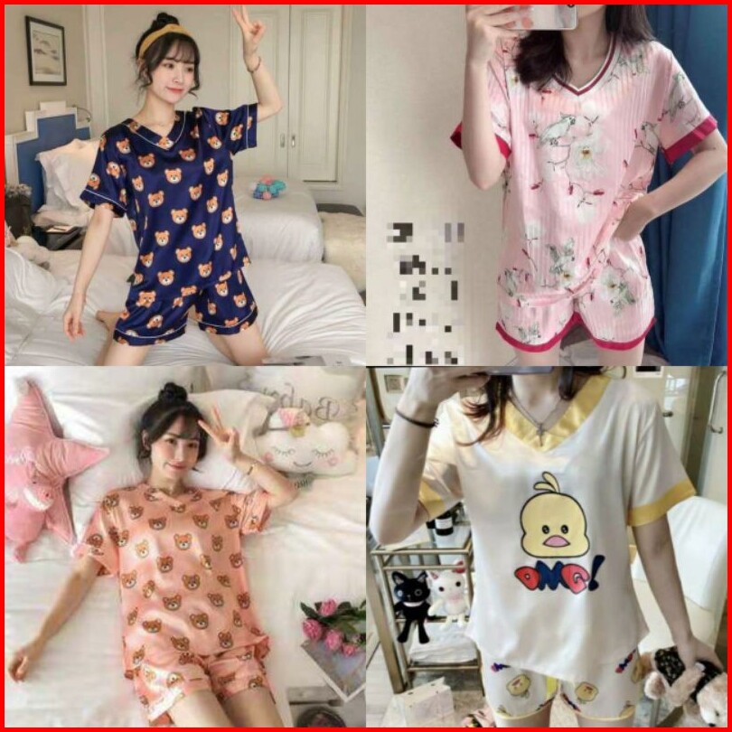 Baju Tidur Satin Import Piyama Satin Pendek Hp V Pajamas Satin