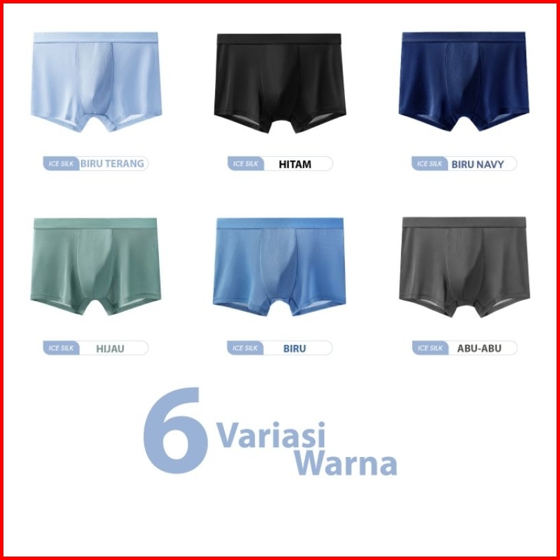 Royal Victor Paket 6 Pcs Celana Dalam Pria Boxer Ice Silk Adem Halus Lembut Tipis Enak Dipakai Cdp002