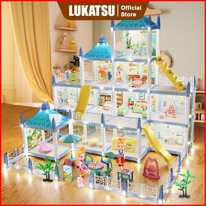 Lukatsu Mainan Rumah Boneka Princess Castle Rumah Princess Rumah Boneka Villa Princess Castle Dengan Lampu Dan Boneka Ma
