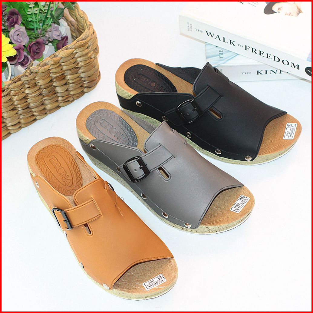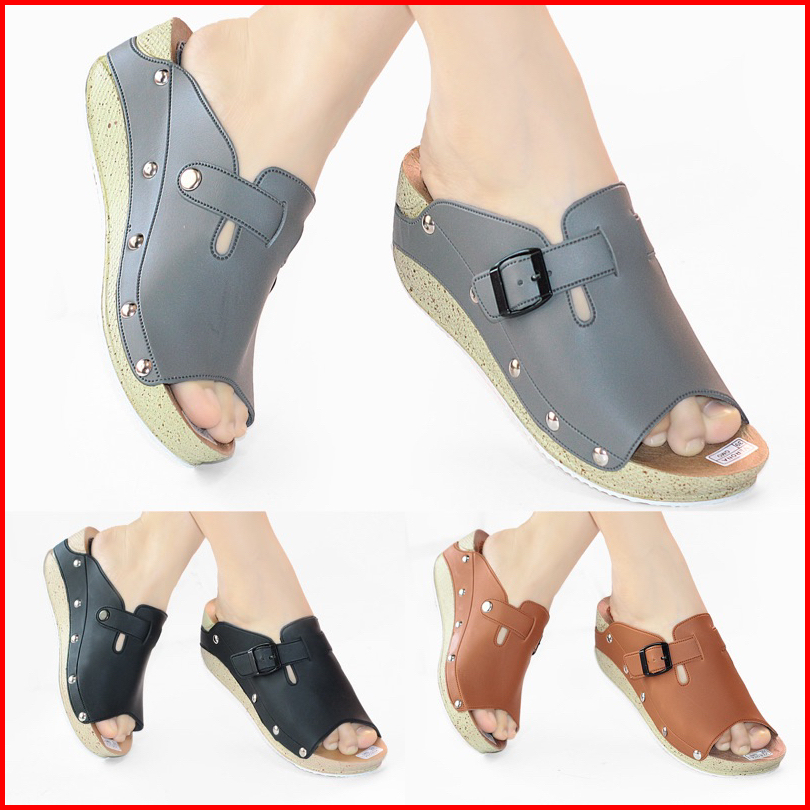 Sandal Wanita Wedges Selop Slop Sendal Kasual Kekinian Murah Gmo