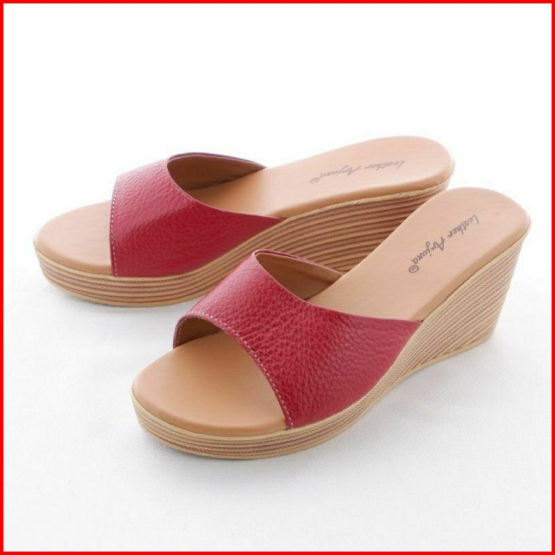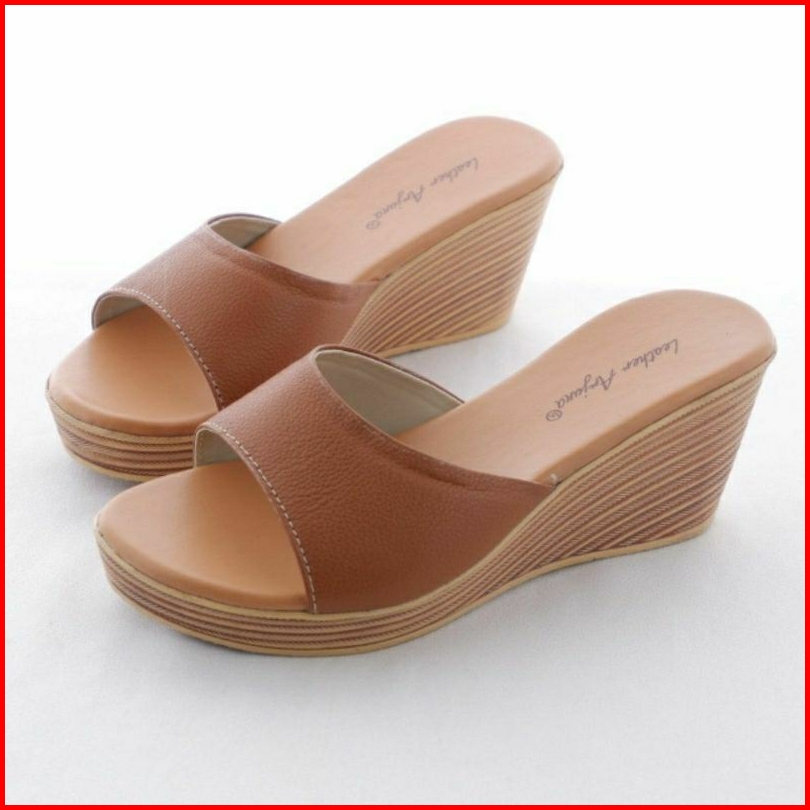 Sandal Wedges Kulit 7cm Selop Papirut Wanita Ibu Ibu Kondangan Pesta Selop Odense