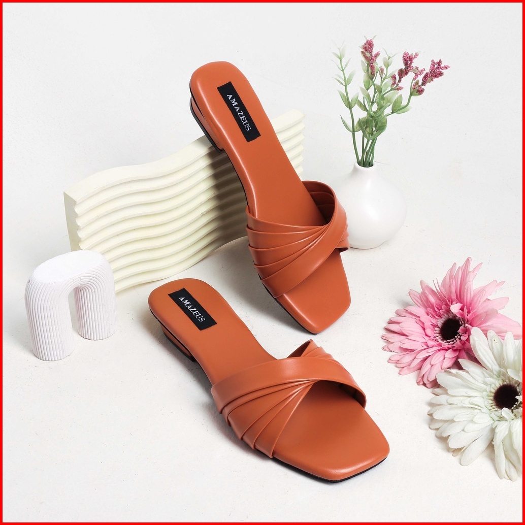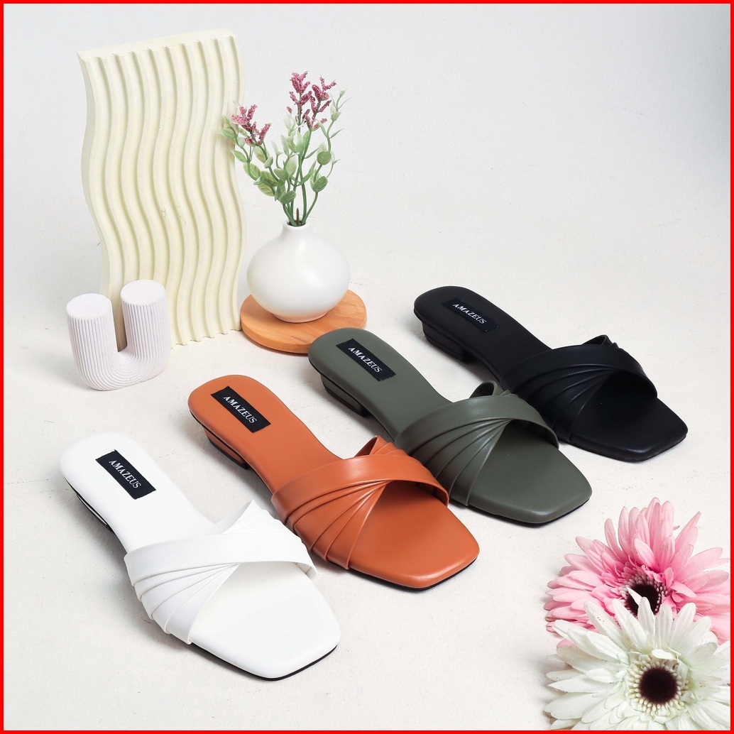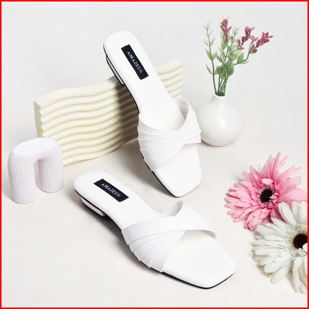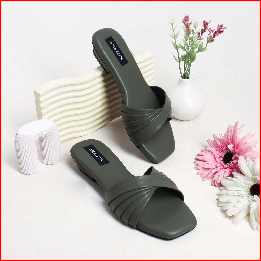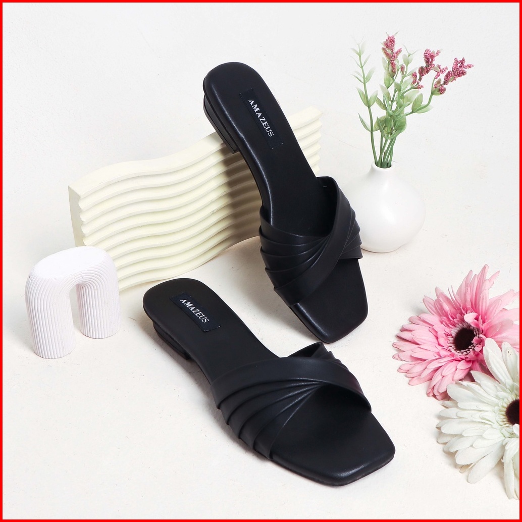 Amazeus Boram Sandal Wanita Sendal Slop Tali Heels Hak 3 Cm