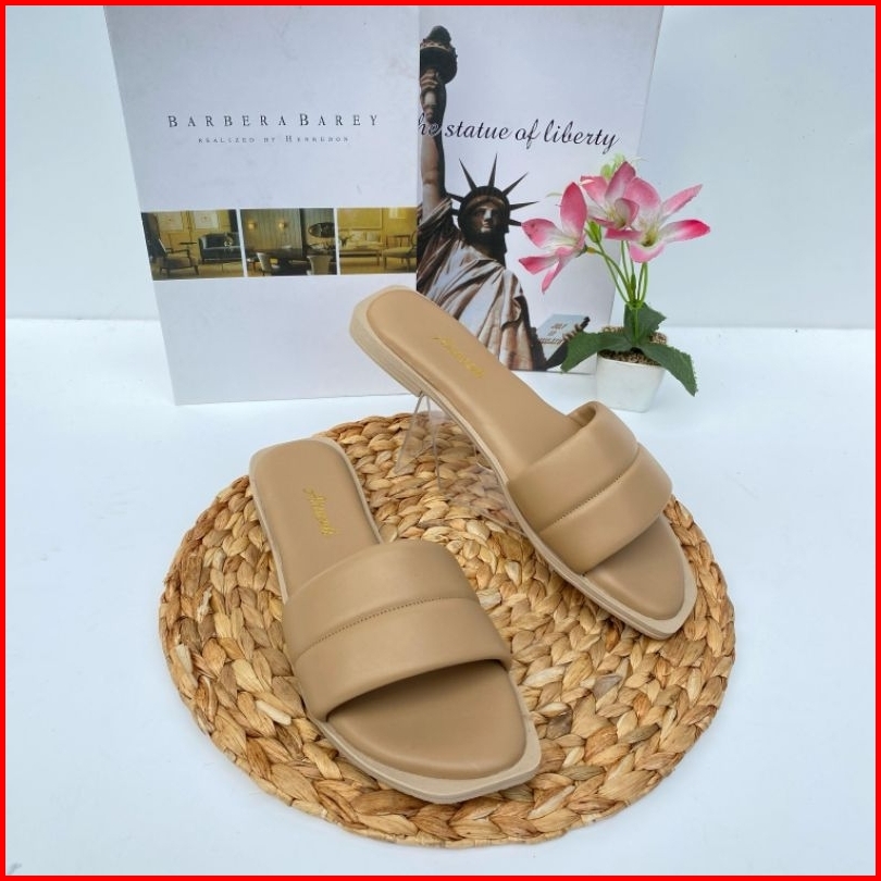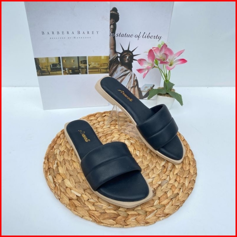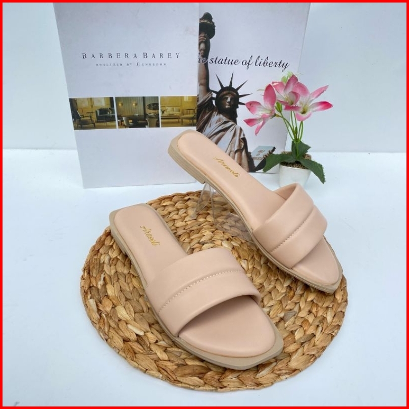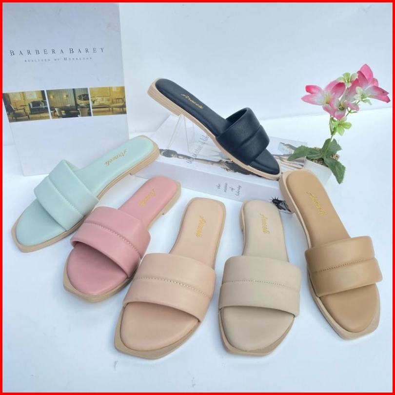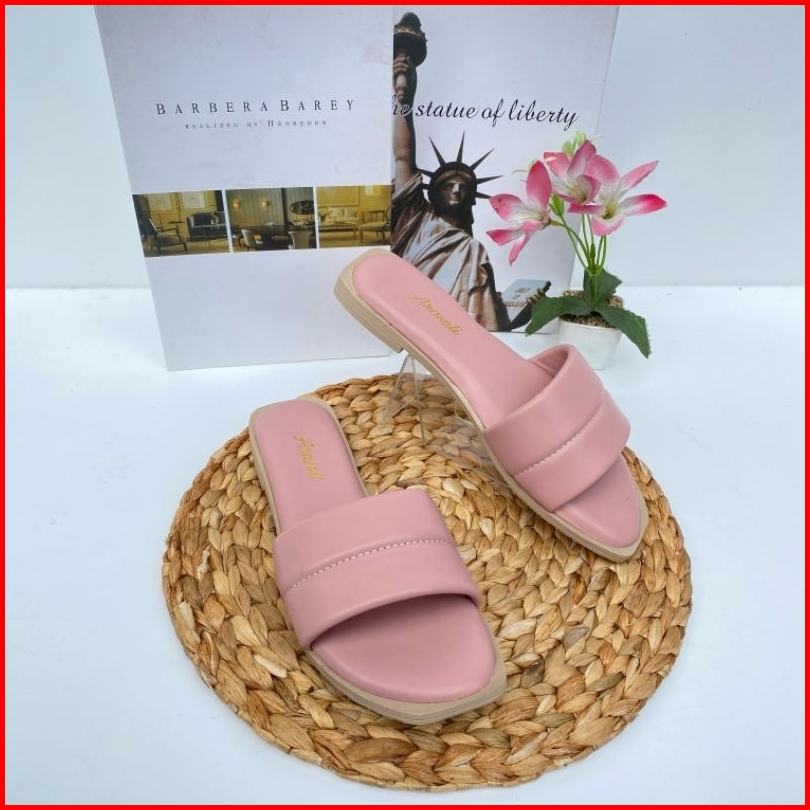 Sandal Wanita Slop Flat Aurora Araseli Empuk Nyaman Anti Licin Slip On Elegan Size 36-40