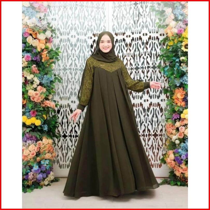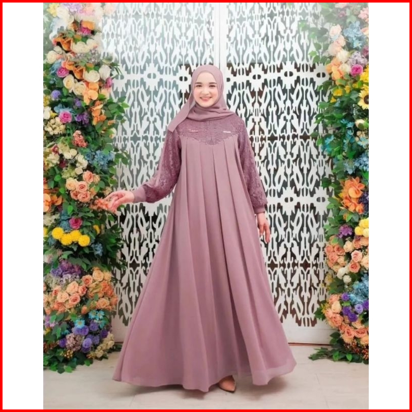 Inara Dress Syar I Couple Ibu Anak Set Khimar Bahan Ceruty Aksen Mutiara Ukuran S M L Xl