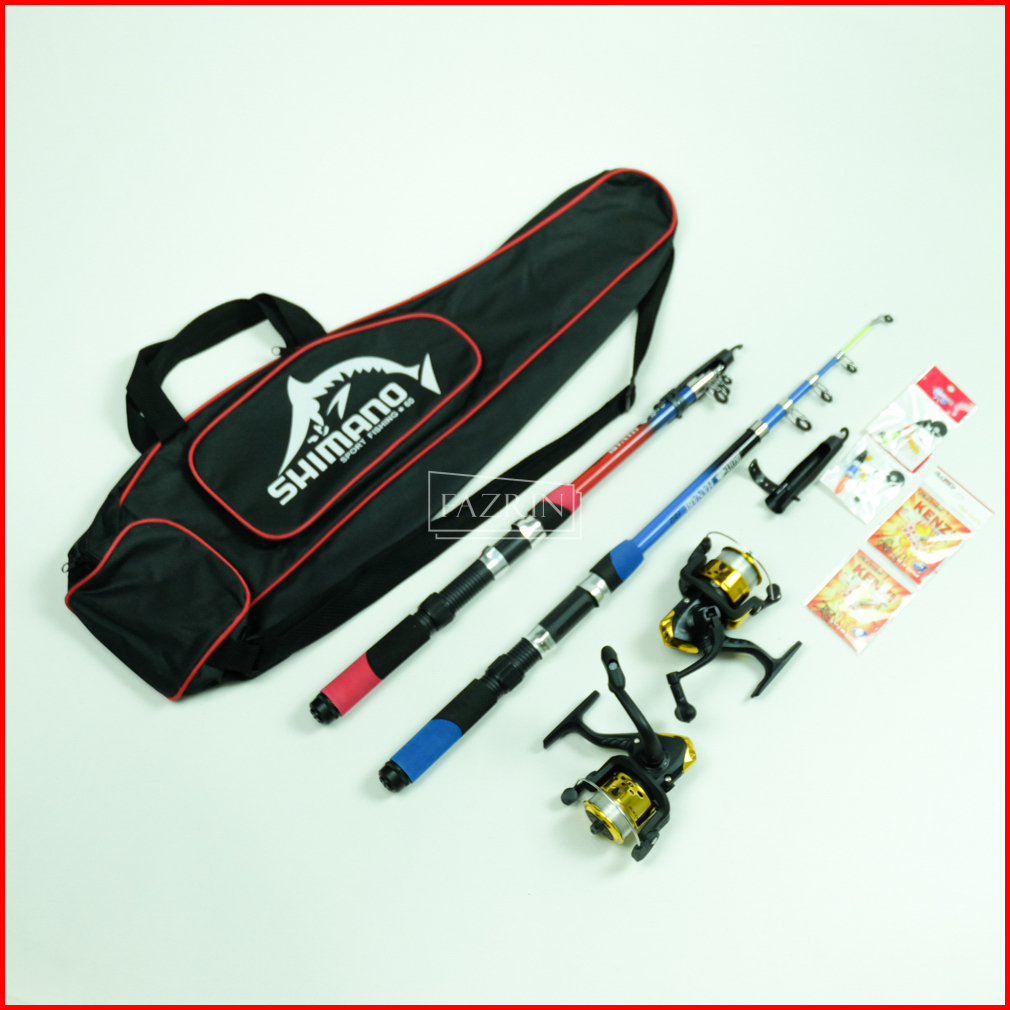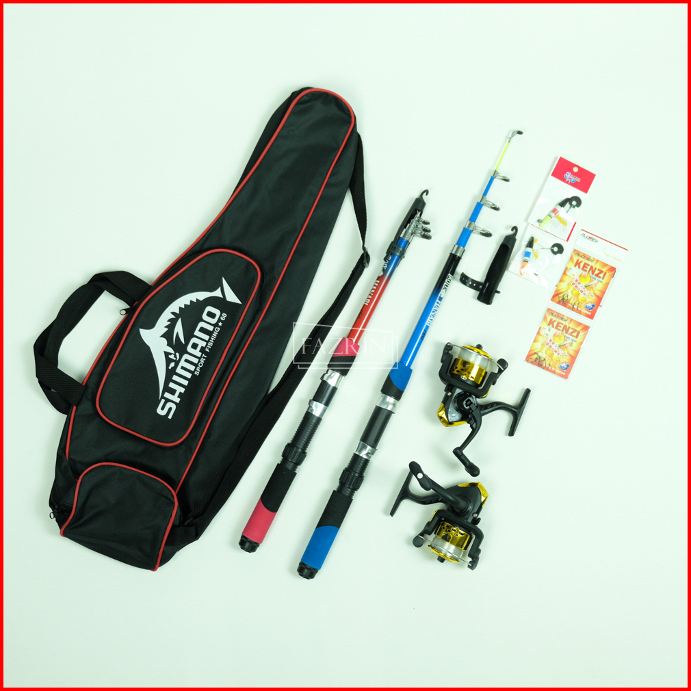 2 Set Pancingan Lengkap Antena Reel 5bb Bonus Tas Kacang V1 Fiber 1 5 Meter Kekuatan 5-7 Kg Siap Pakai 2 Reel Audrey 5bb
