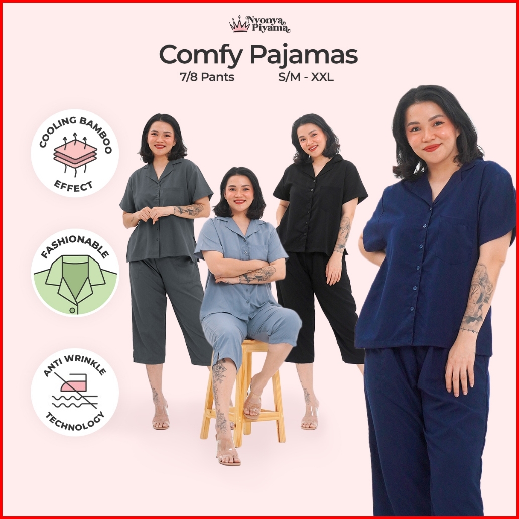 Nyonya Piyama Poly Bamboo Set Piyama Celana Pendek 7 8 Comfy Pj