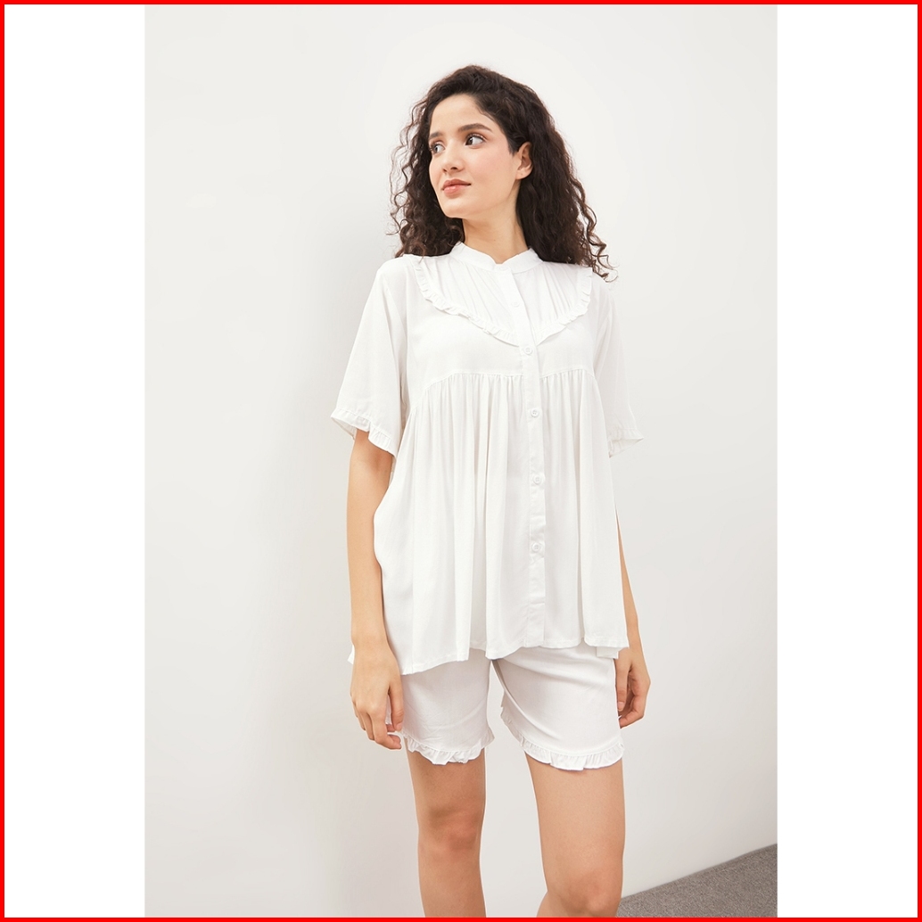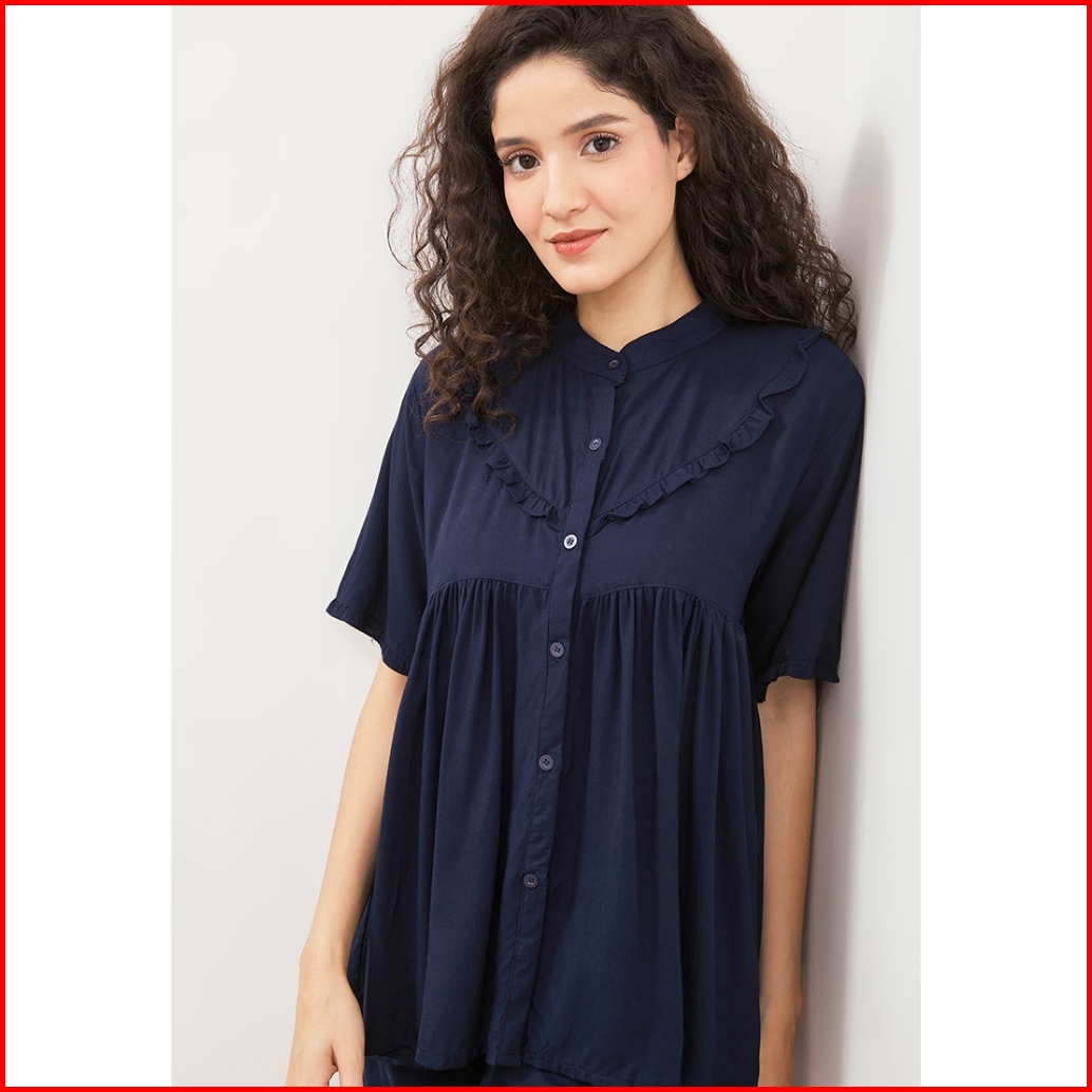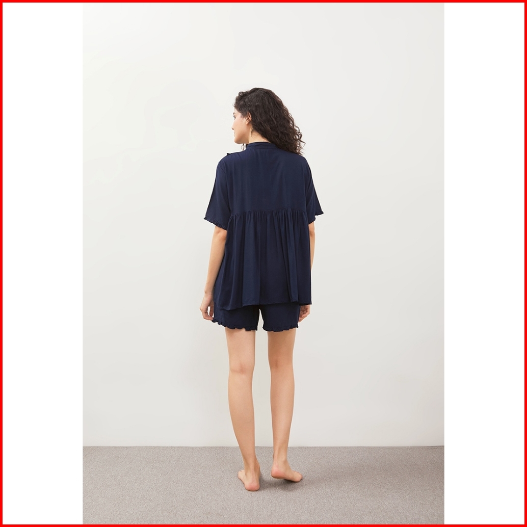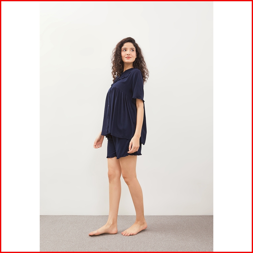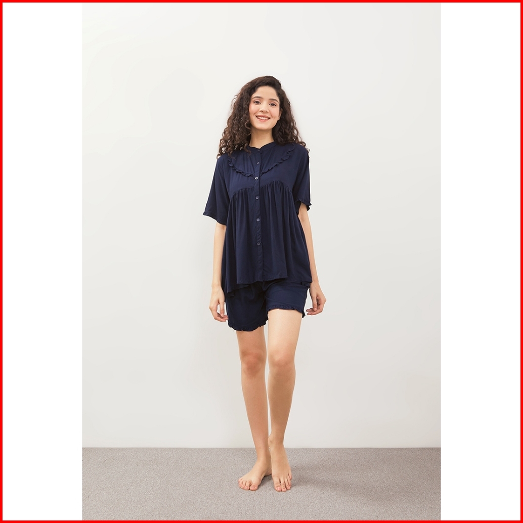 Blues And Blush Ruffle Pajama Set Joy Piyama Set Pendek