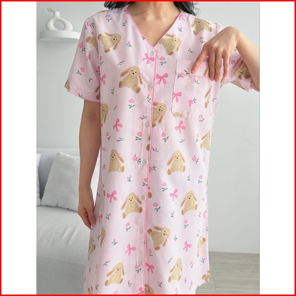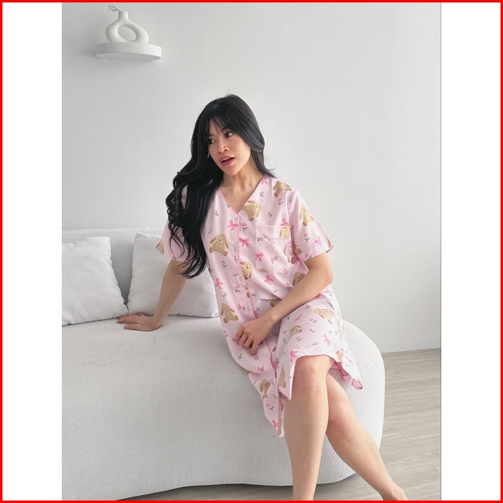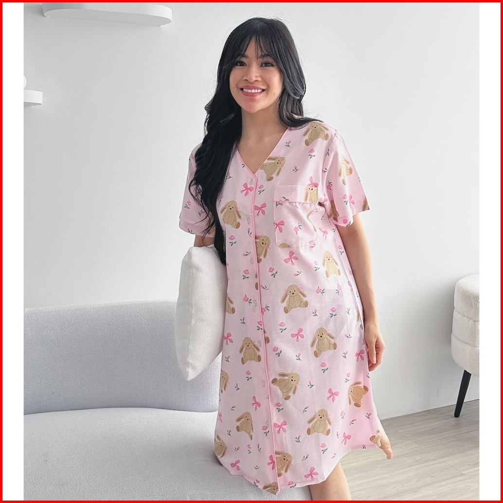 Daster Sleepdress - Bunny Bow Tanpa Kerah