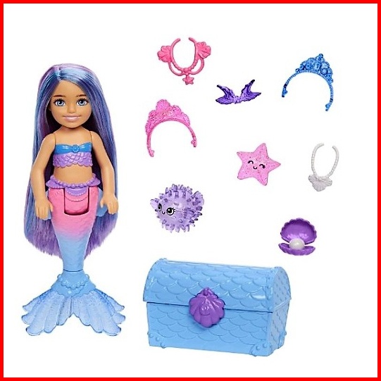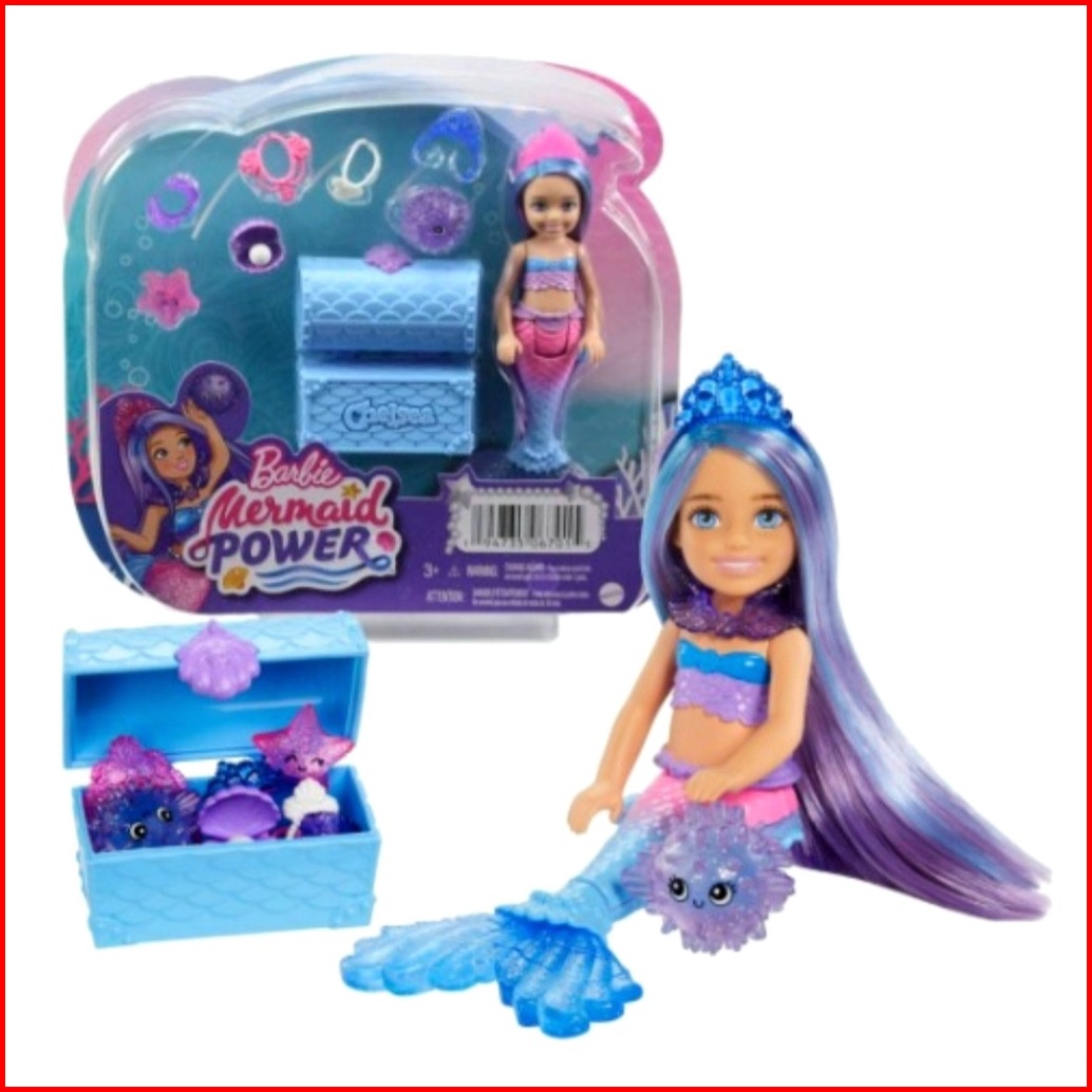 Barbie Mermaid Power Chelsea Mermaid Doll Hhg57 Blue Purple Hair With 2 Pets Treasure Chest Accessories