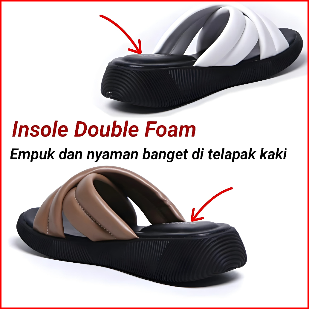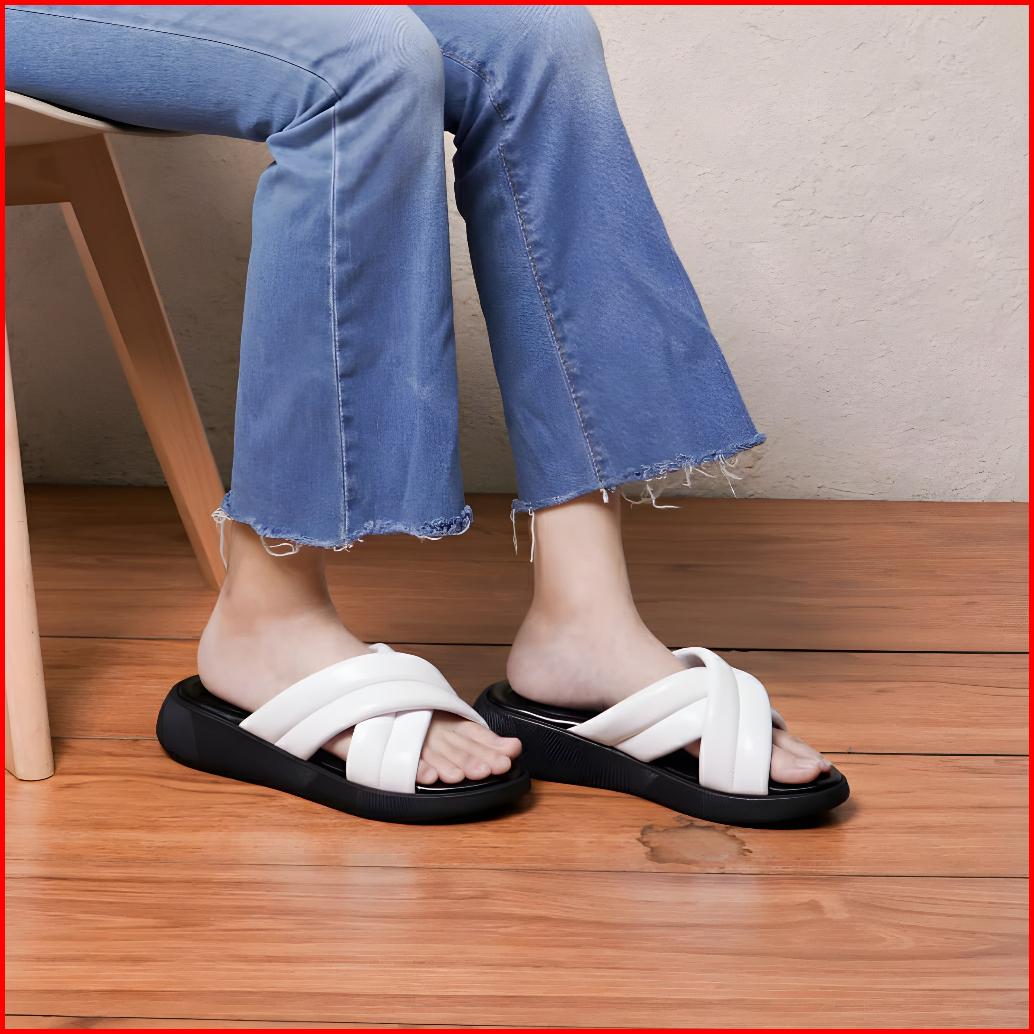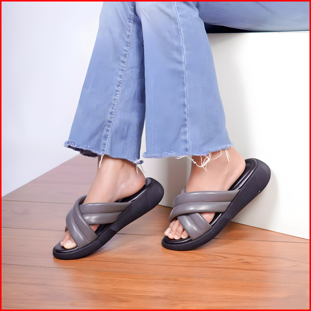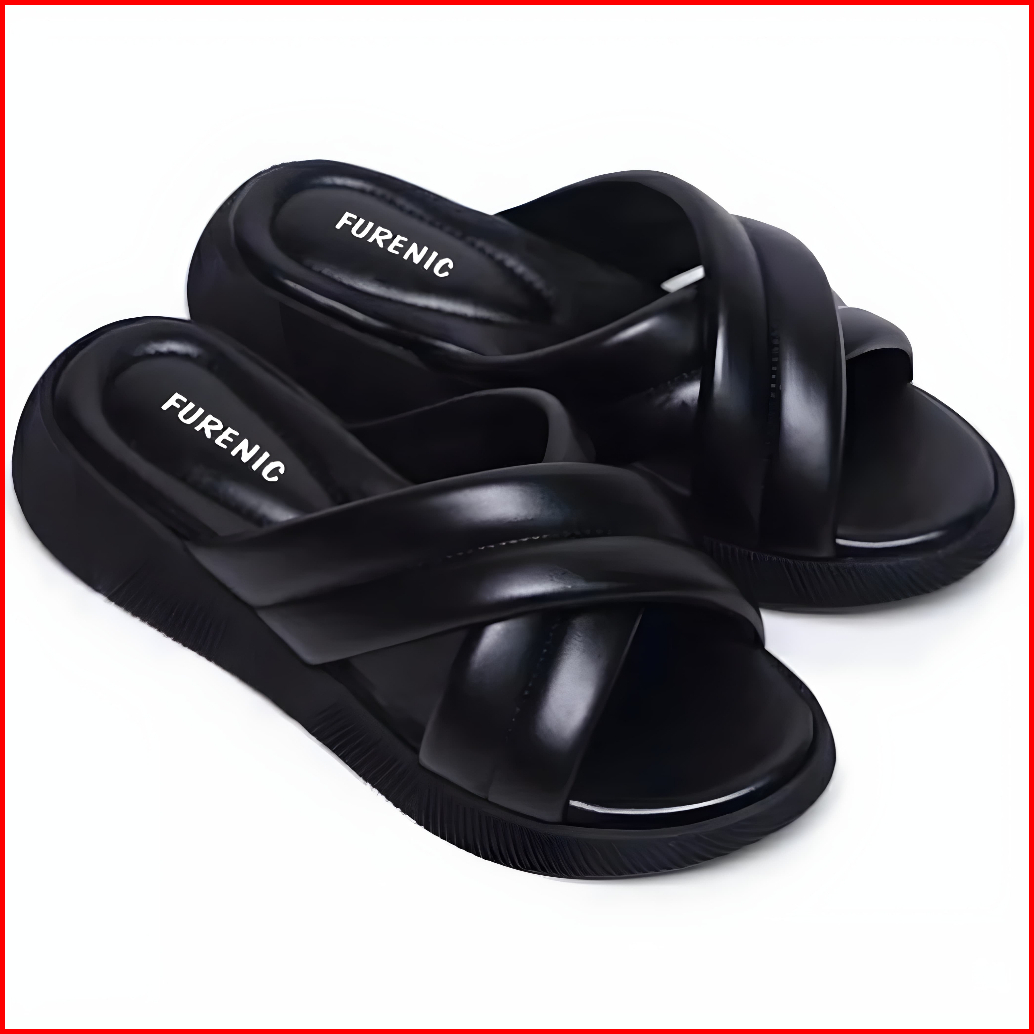 Furenic Sandal Slop Wanita Kekinian Sendal Selop Wedges Terbaru Cewek Slip On - Eveline
