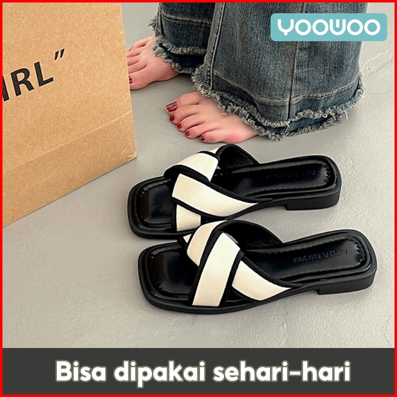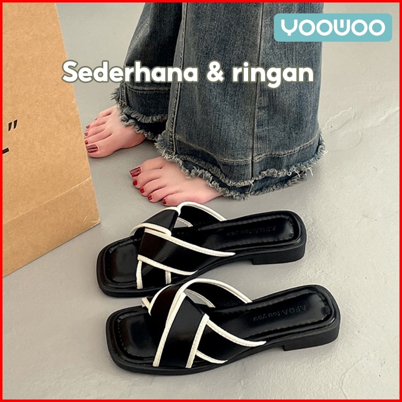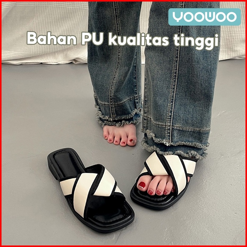 Yoowoo Sandal Slop Sandal Teplek Slip On Sandal Wanita Slip On Wanita Sepatu Casual