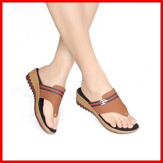 Sandal Wanita Wedges Selop Slop Tinggi Hak Heels Kondangan Kekinian Terbaru Terlaris Karet Rr21