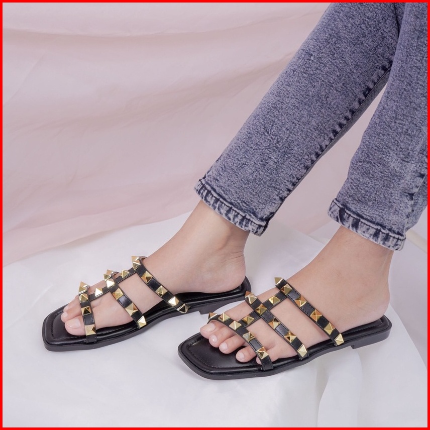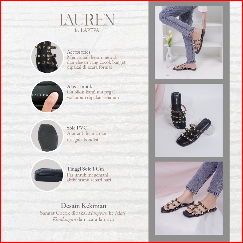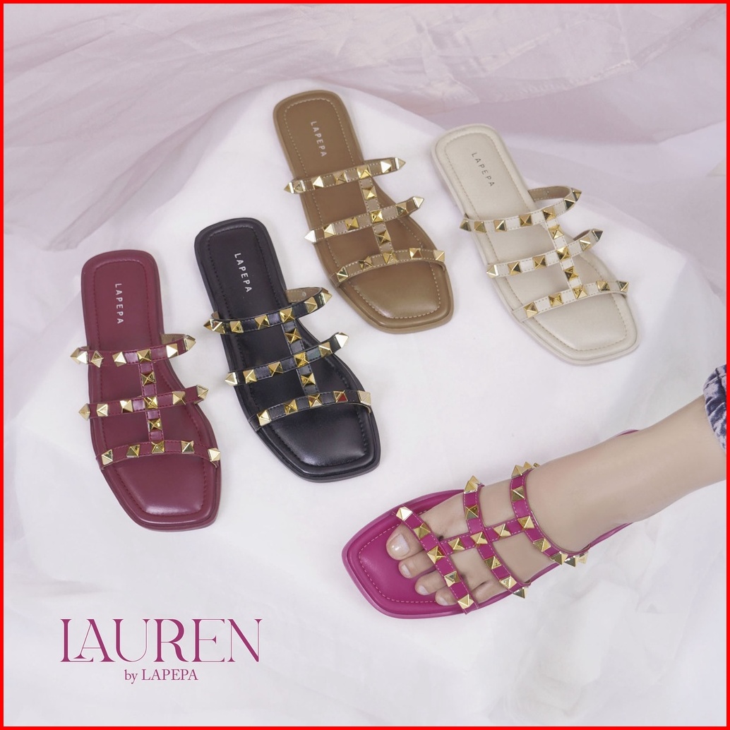 Lapepa Store - Lauren All Colors Sandal Flat Wanita Sandal Teplek Cewek Tiga Ban Kristal Kekinian Sendal Slop Perempuan