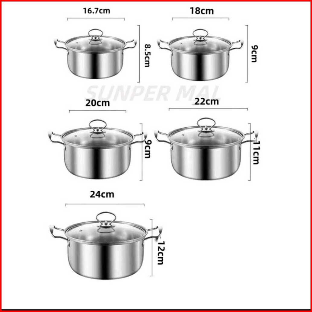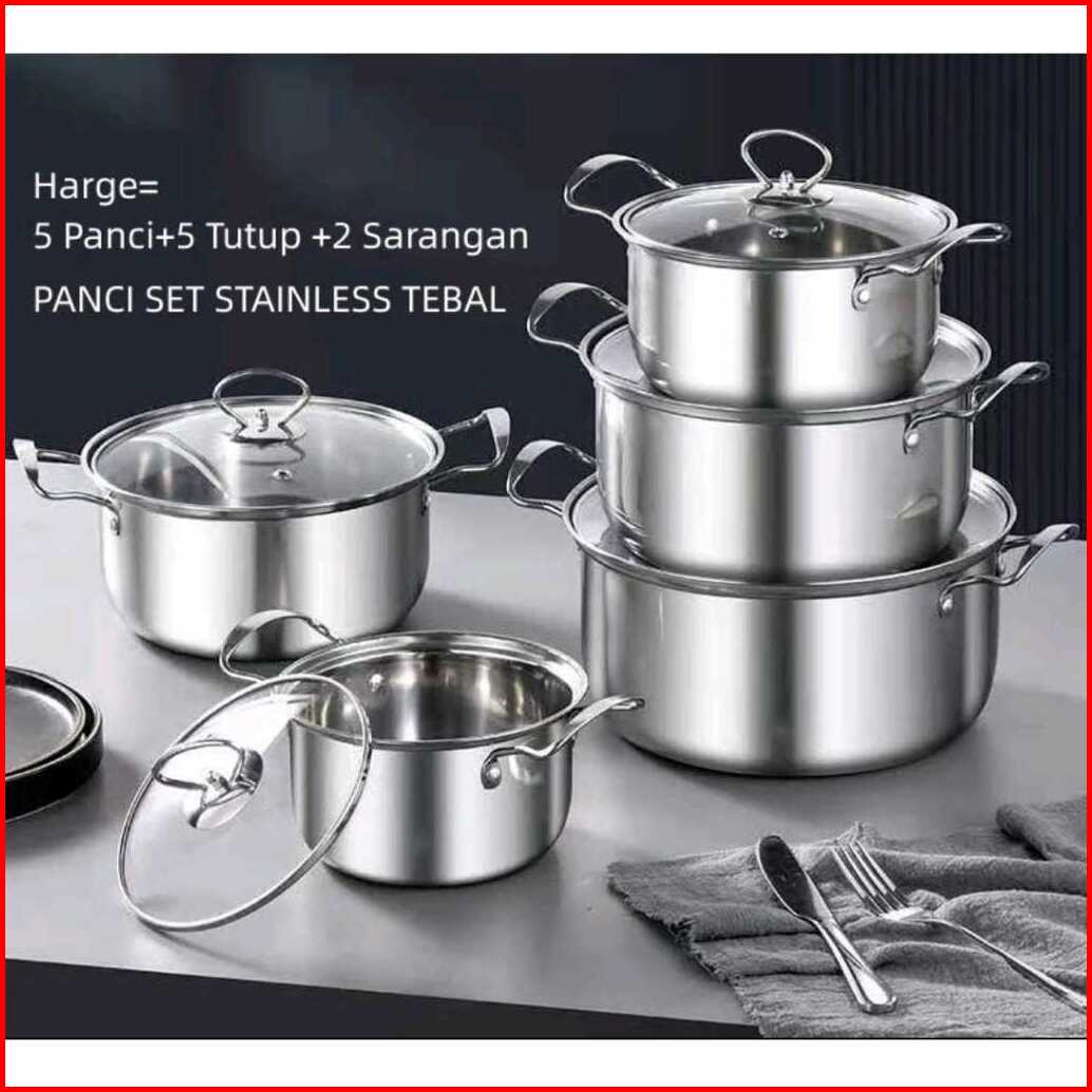 Panci Dan Steamer Set Stainless Tebal 1set Isi 5pcs High Pot