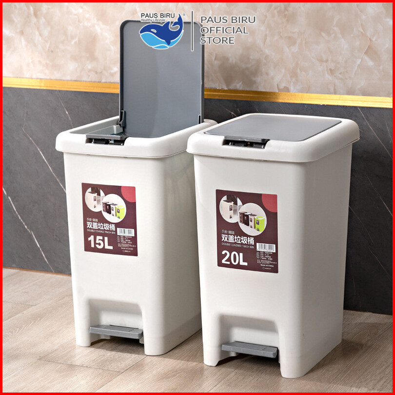 Paus Biru - Tempat Sampah Plastik Tertutup Tong Sampah Injak 8l 10l 15l 20l Trash Bin Toilet Dapur