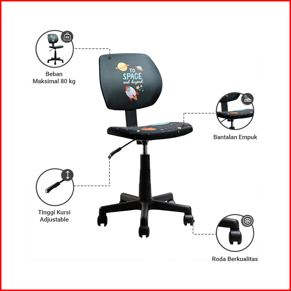 Informa Otto Kursi Belajar Anak Space - Hitam Tempat Duduk Dengan Roda Kids Study Chair Furniture Indoor Kamar Anak