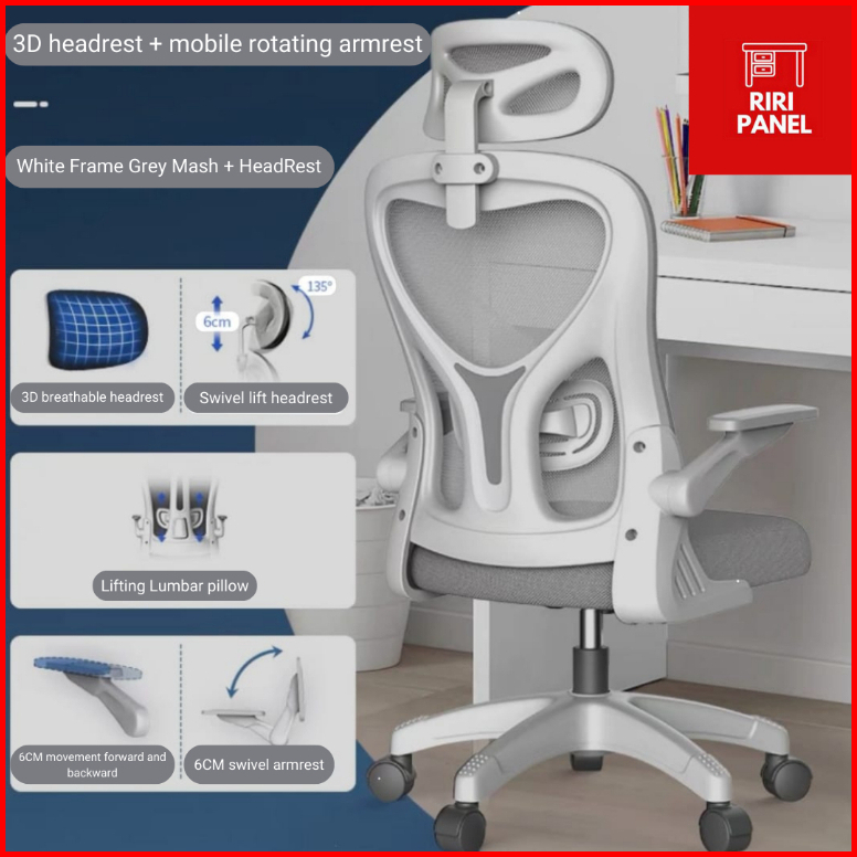 Riri Kursi Headrest Kursi Roda Kursi Kantor Kursi Belajar Kursi Hidrolik Tilt Roda Multifungsi