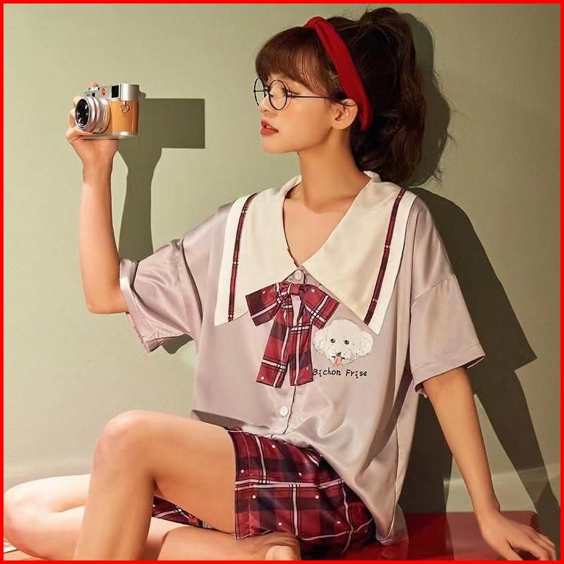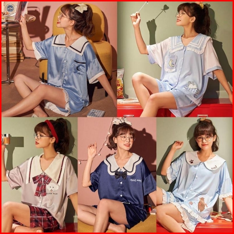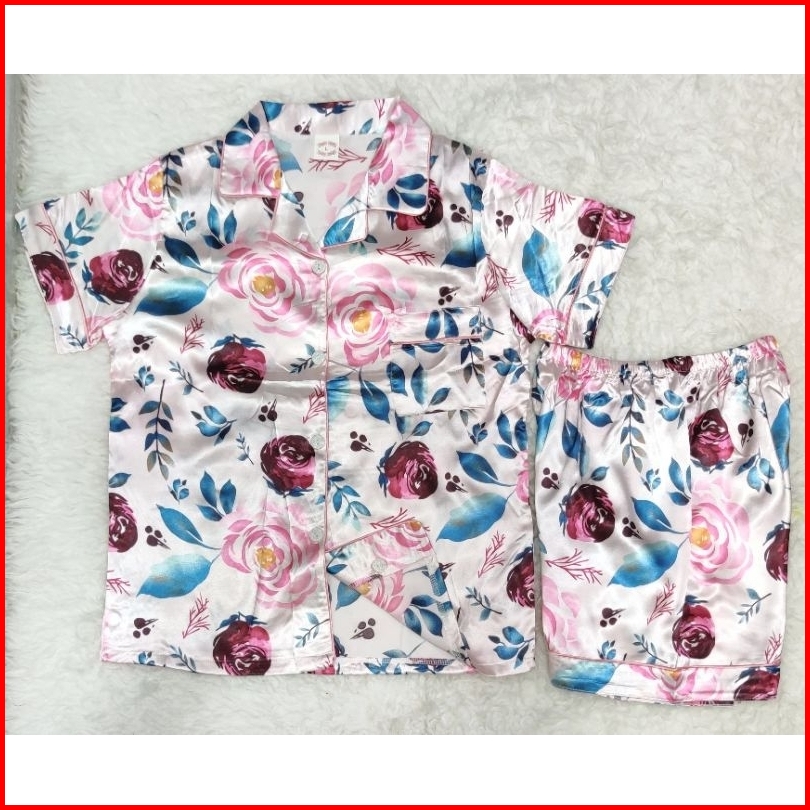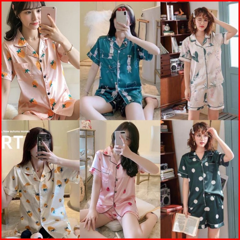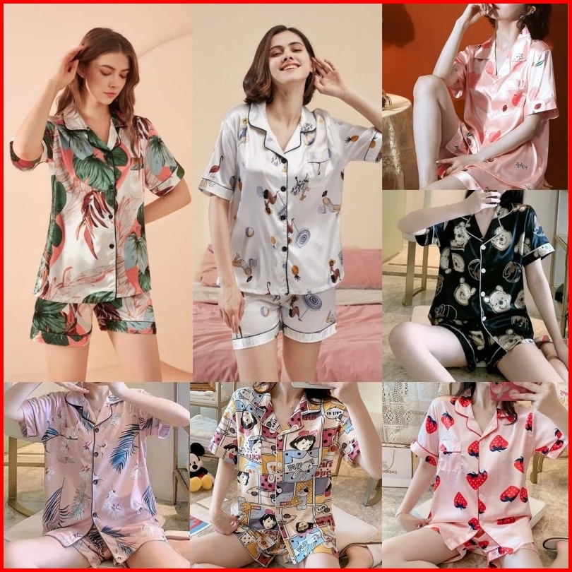 Baju Tidur Satin Import Piyama Satin Motif Baju Tidur Celana Pendek Pajamas Satin Hp Lengan Pendek Set Piyama Dewasa Kan