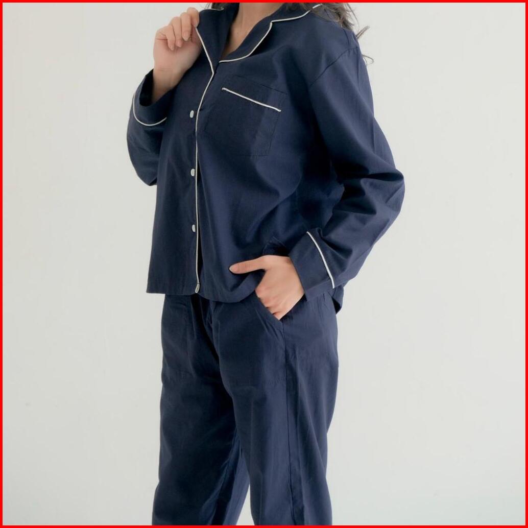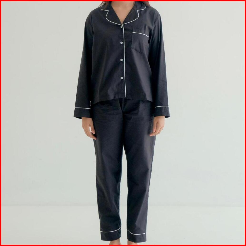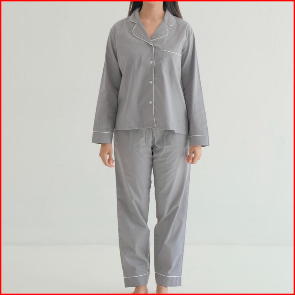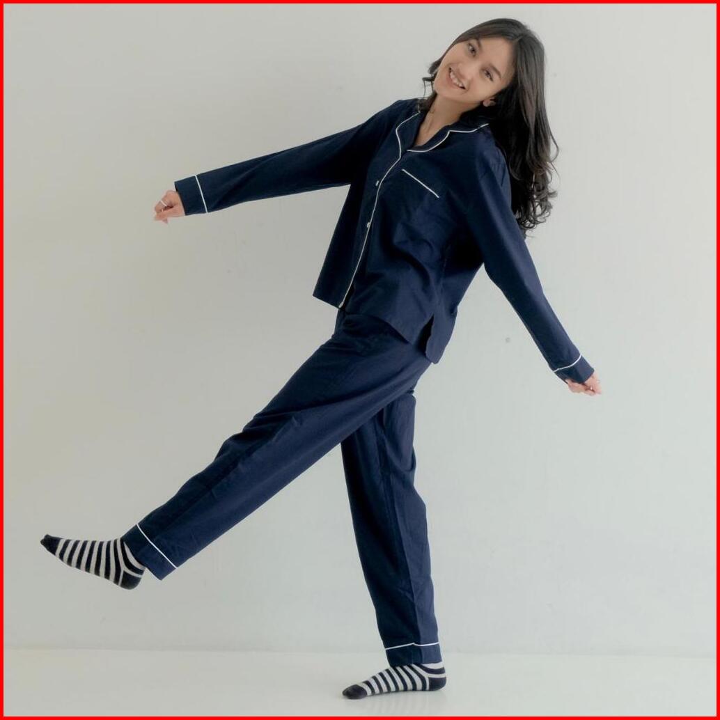 Piyama Basic - 100 Katun - Pakaian Tidur Wanita Baju Lengan Panjang Celana Panjang