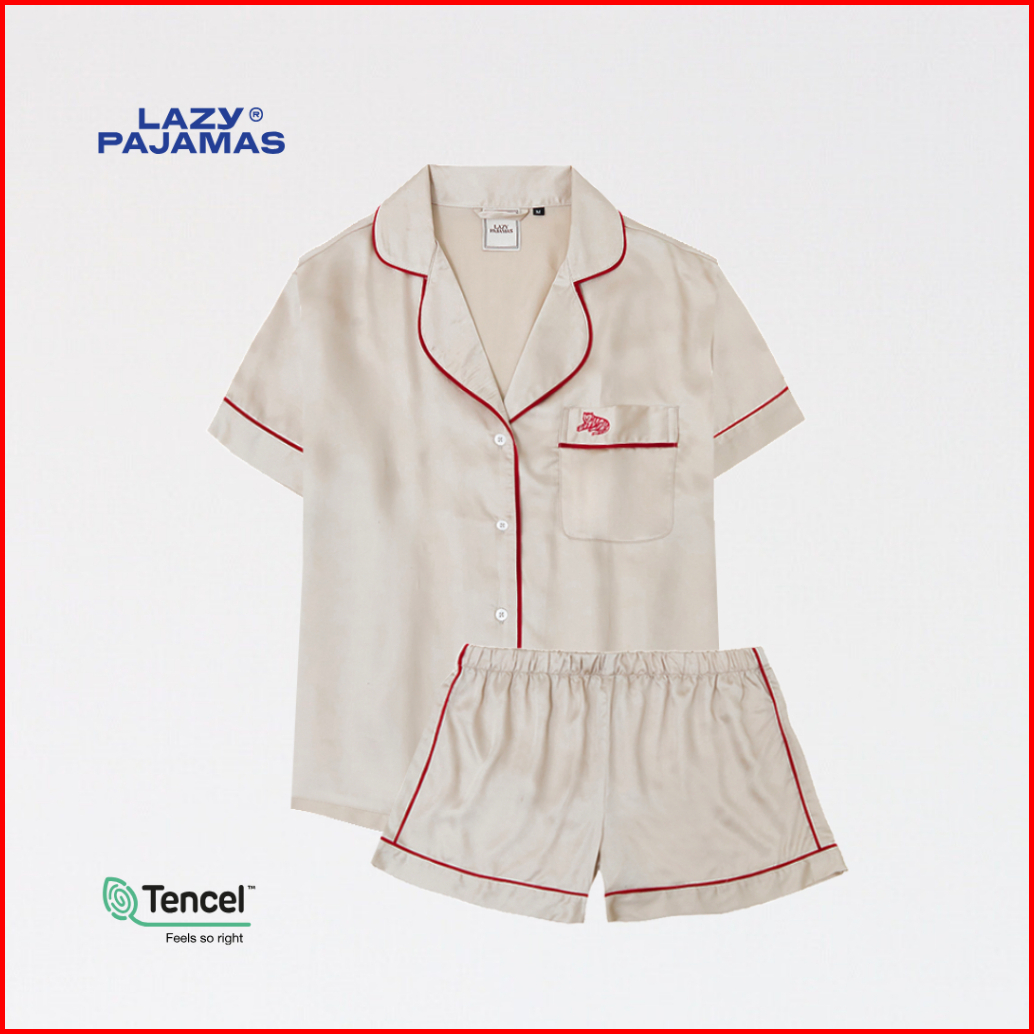 Lazy Pajamas Tencel Silk Pajamas - Light Almond Piyama Baju Tidur