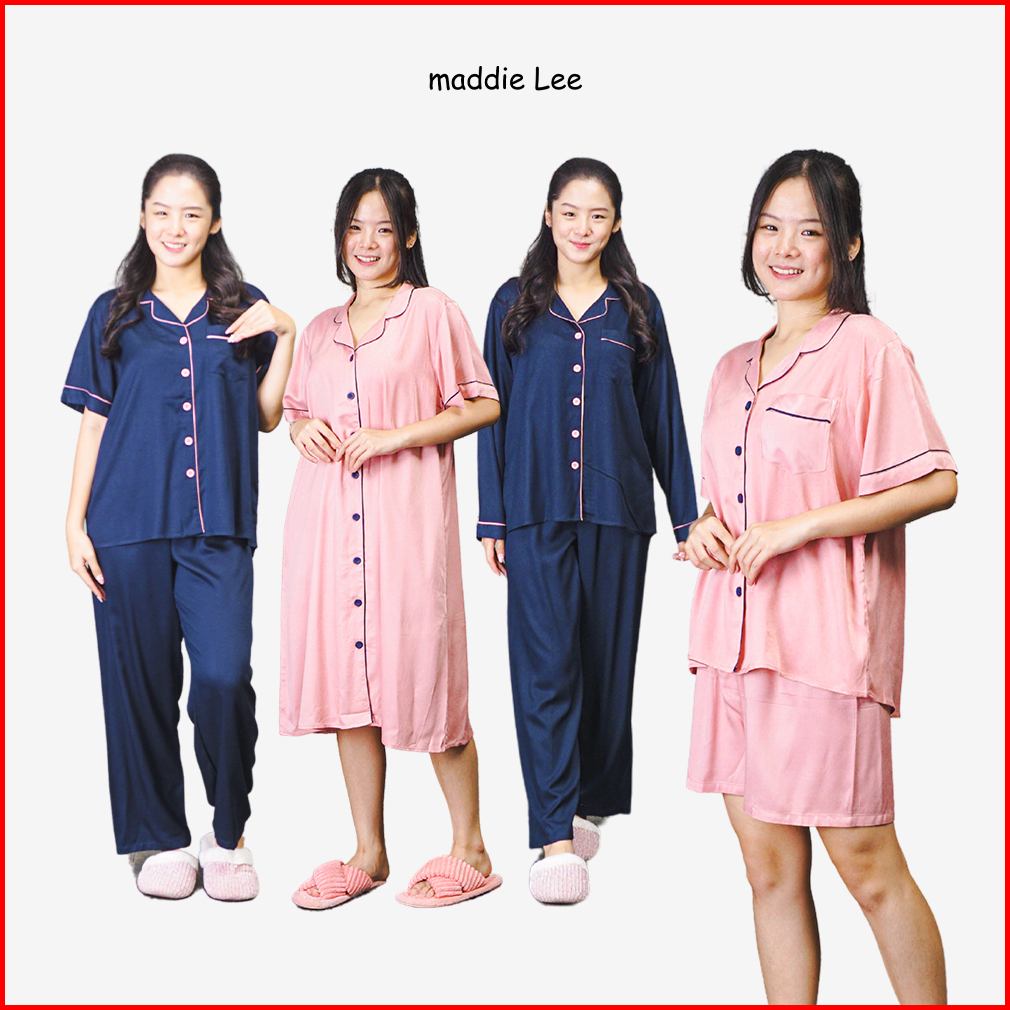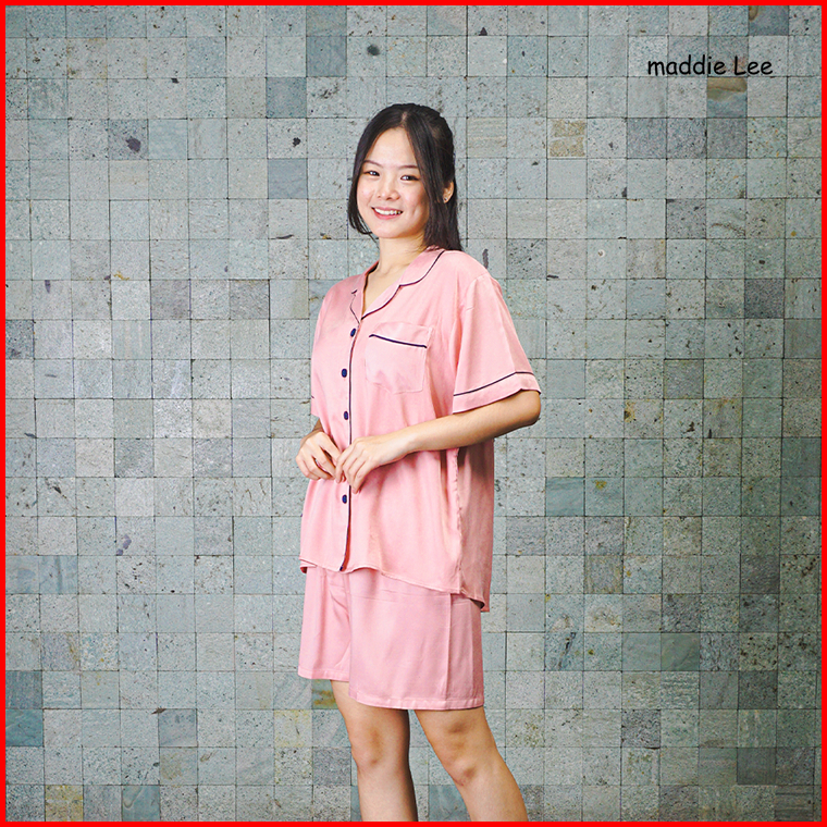 Maddie Lee Piyama Wanita Dewasa Ishi Polos Full Piping