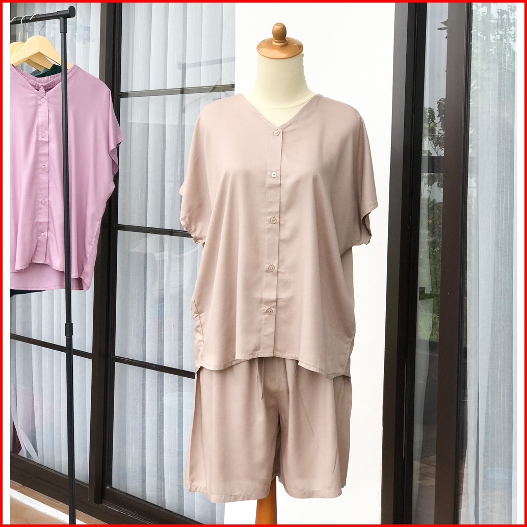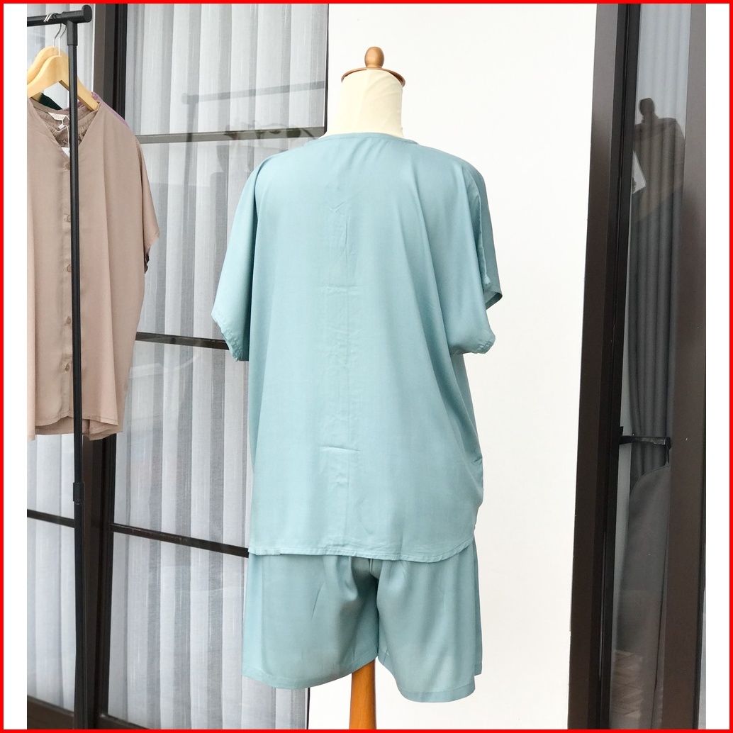 Lalucuku Series Setelan Baju Tidur Freila Piyama Pendek Motif Polos Bahan Rayon